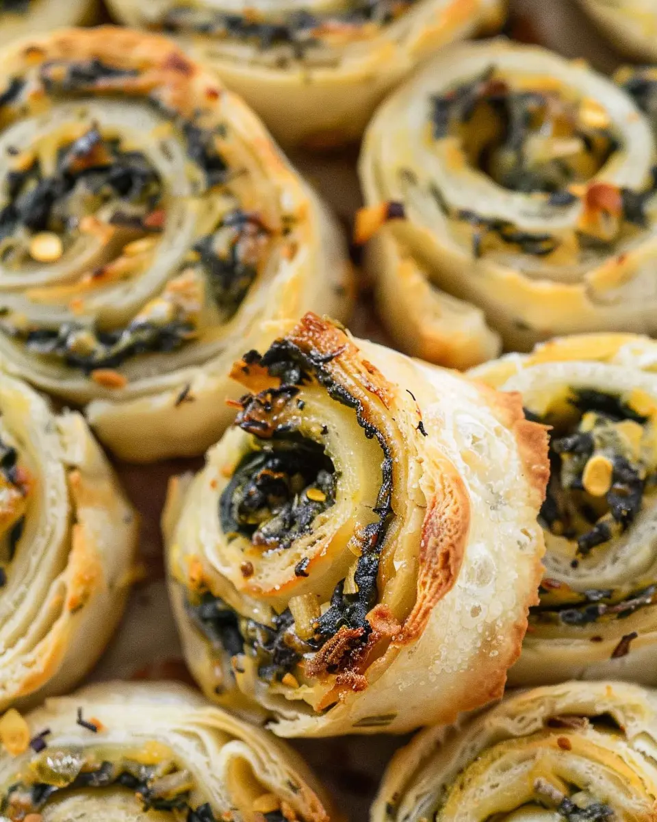 To achieve flaky, golden crusts for your 3-Ingredient Spinach Dip Pinwheels, start by keeping your puff pastry cold. When the butter layers are cold, they create that delightful puff texture while baking. It’s also a good idea to roll out the pastry on a lightly floured surface to avoid sticking. A quick brush of egg wash before baking will give your pinwheels a beautiful sheen!