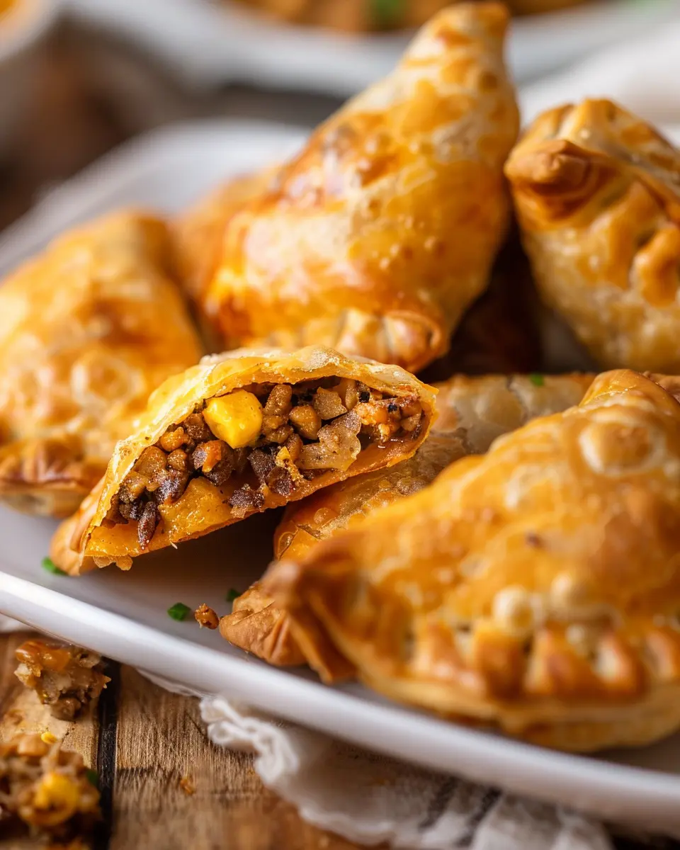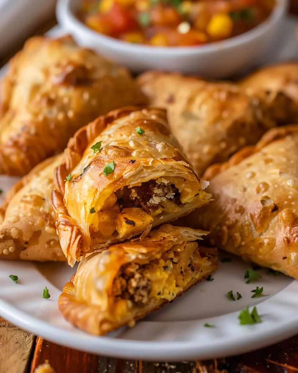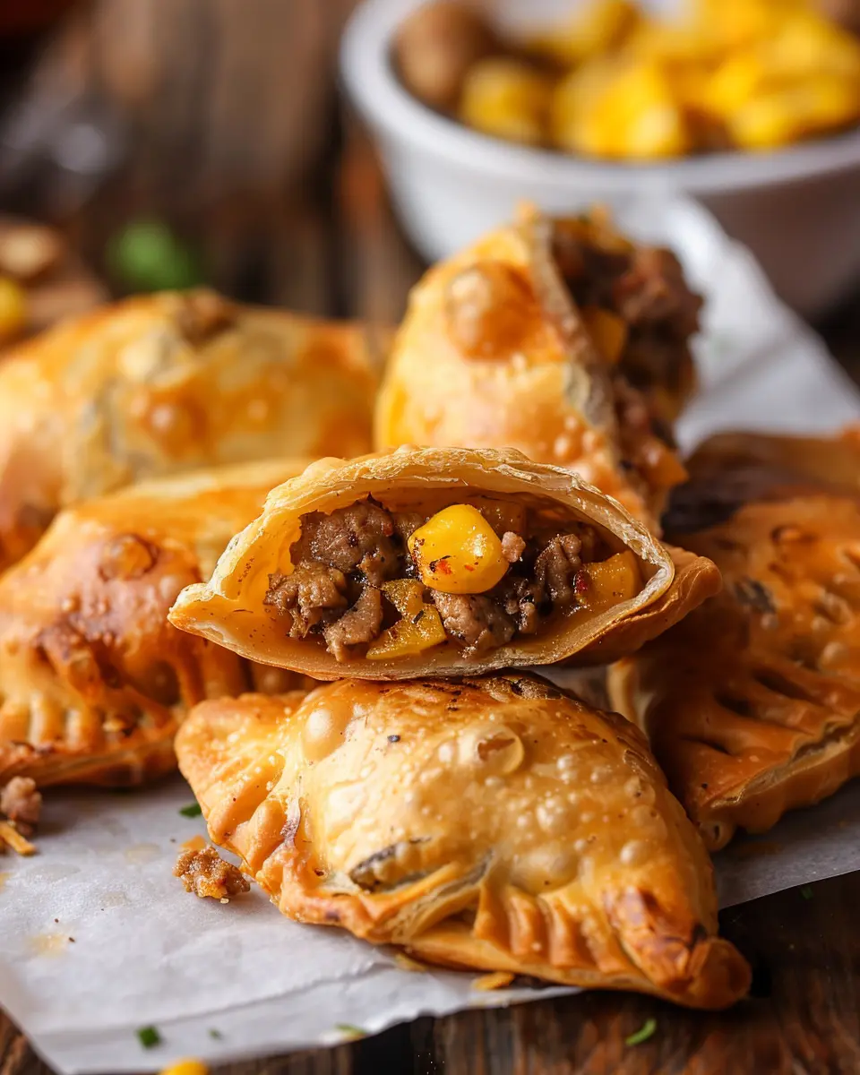 Preheat your air fryer to 375°F (190°C). Lightly brush the tops of the empanadas with some oil or melted butter for that golden-brown finish. Place them in the air fryer in a single layer, making sure they are not overcrowded. Cook for about 8–10 minutes, flipping halfway through, until they are beautifully crispy and golden.