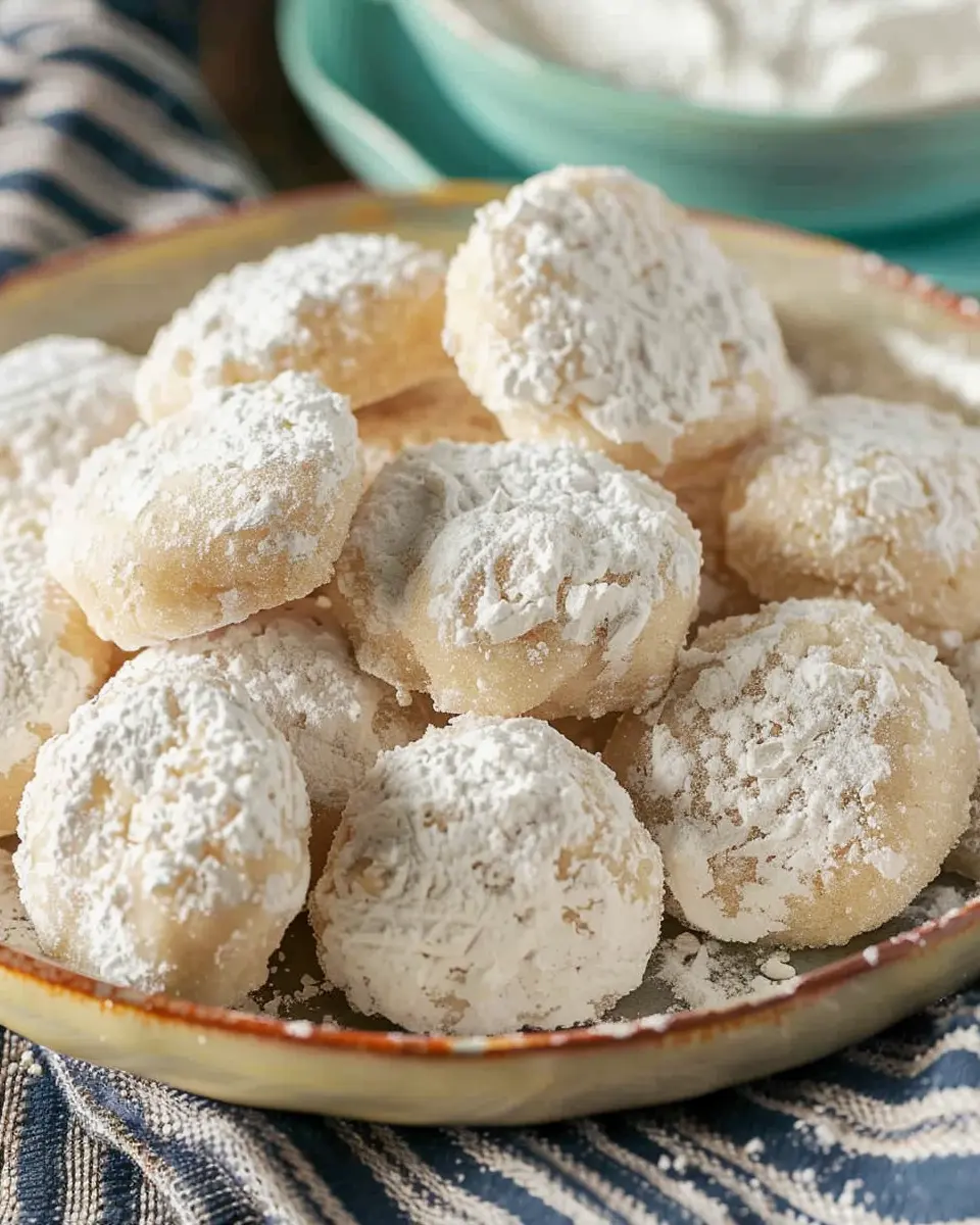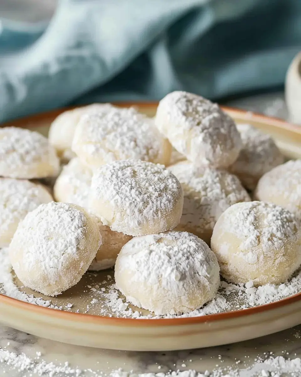 When your cookies come out, allow them to cool for a few minutes. This is the perfect time to prepare a plate of powdered sugar. Carefully roll each cookie in the sugar while they’re still warm. The sugar will stick better at this stage, creating that lovely, snowy coating we all adore.