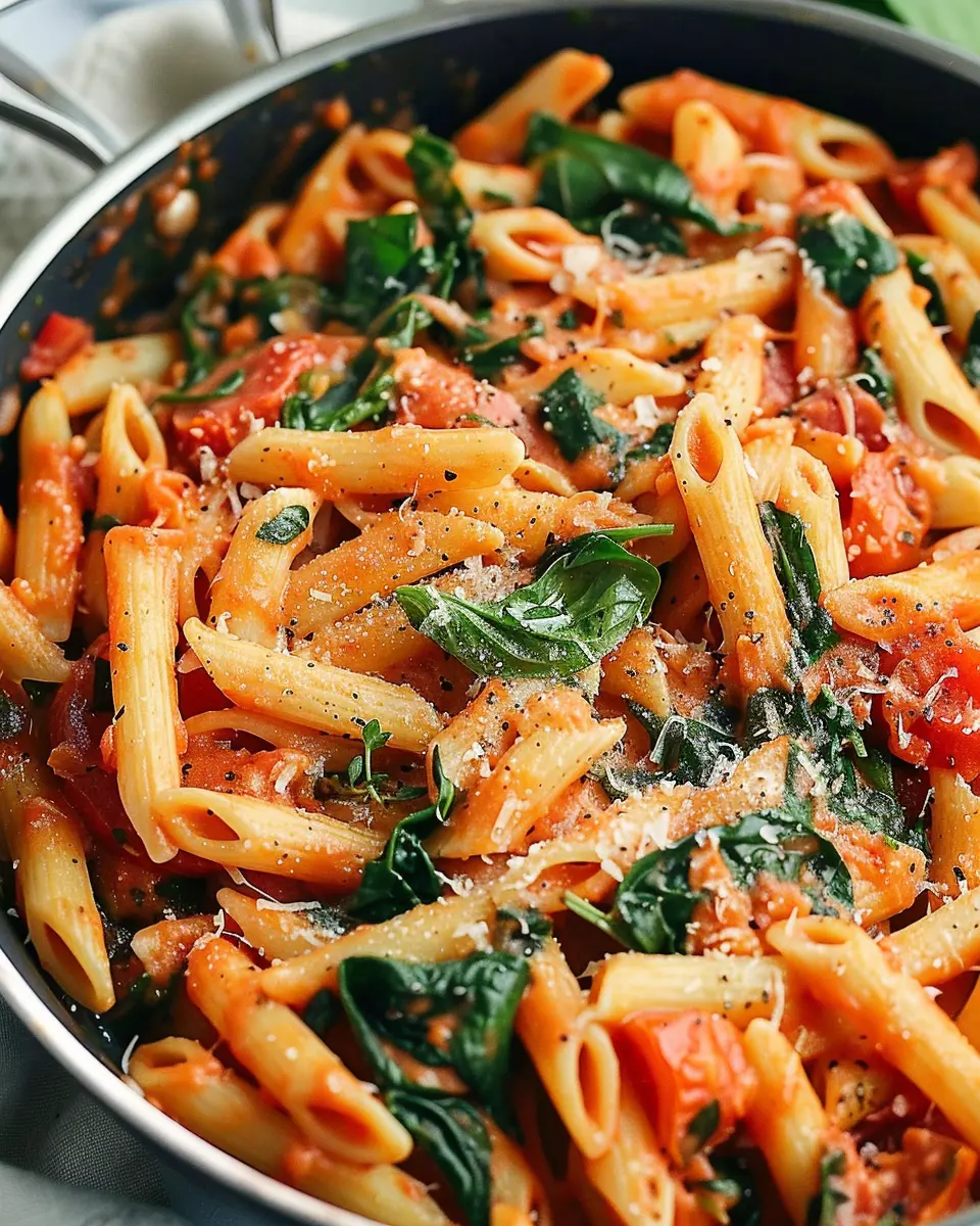 Delicious Spinach Tomato Pasta with Turkey Bacon: A Quick Delight