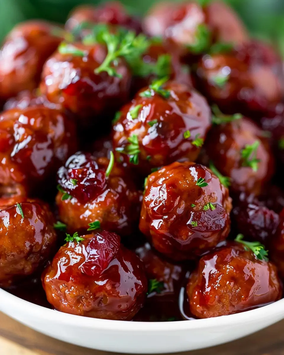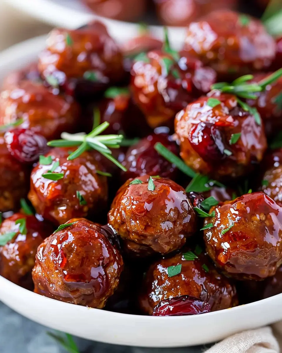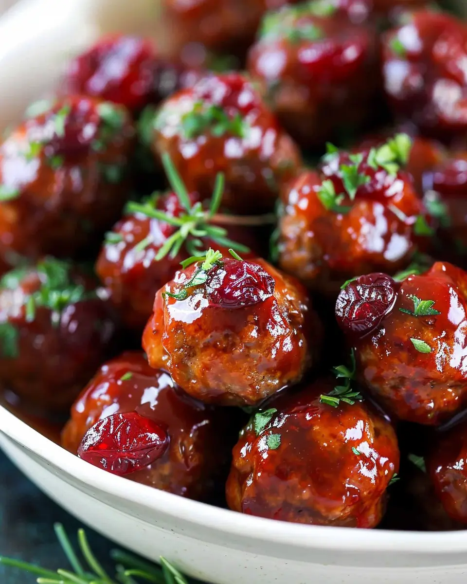 Serving Bowl Delight: Pour your cranberry sauce over the meatballs in a beautiful, shallow dish. Garnish with fresh rosemary or thyme to add a pop of color and a dash of seasonal flavor.