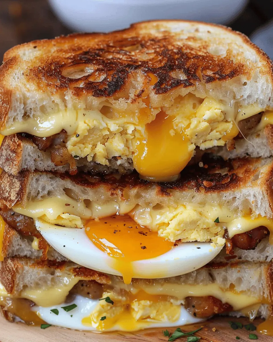PrintBreakfast Grilled Cheese Eggs: Indulgent Twist with Turkey Bacon