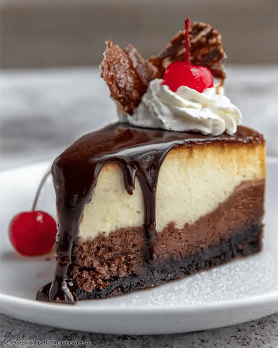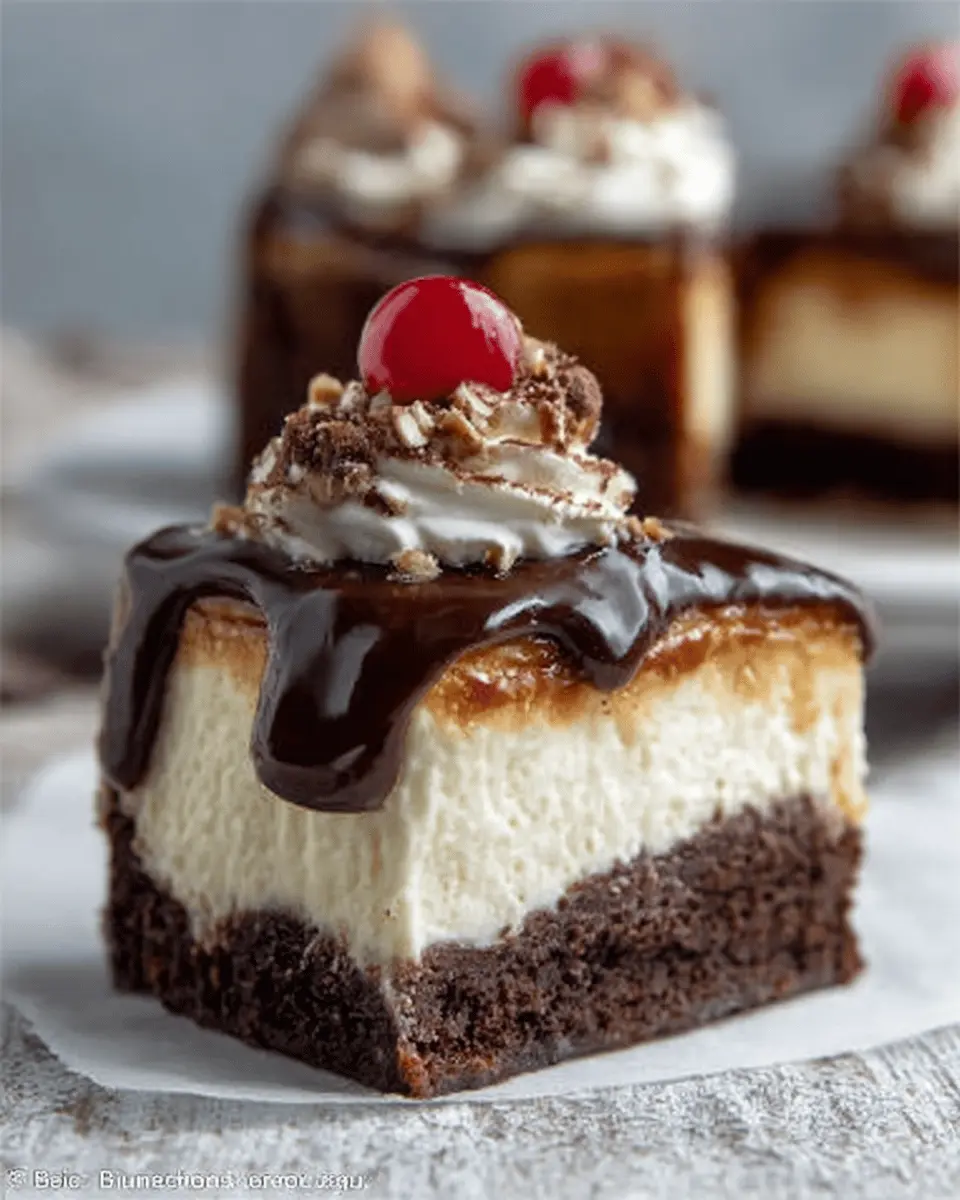 A deliciously rich brownie sundae cheesecake that combines the best of both desserts.