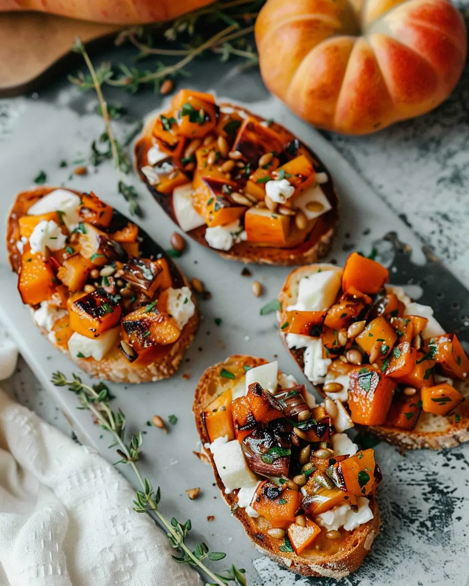 A delightful appetizer that combines the sweetness of butternut squash and apples on toasted bread, perfect for gatherings.