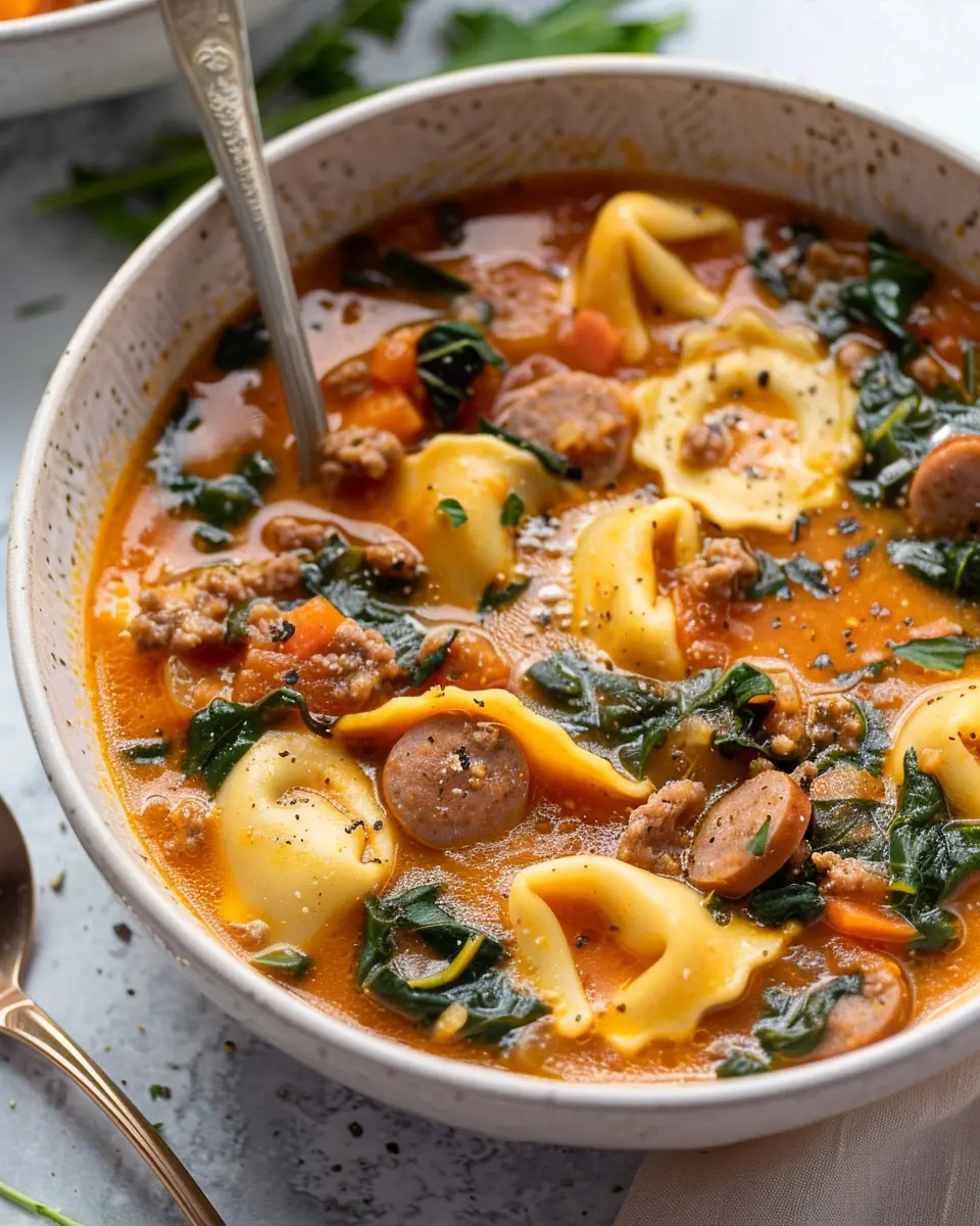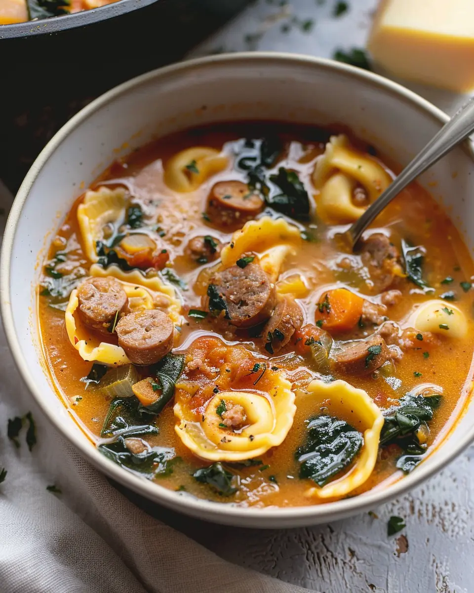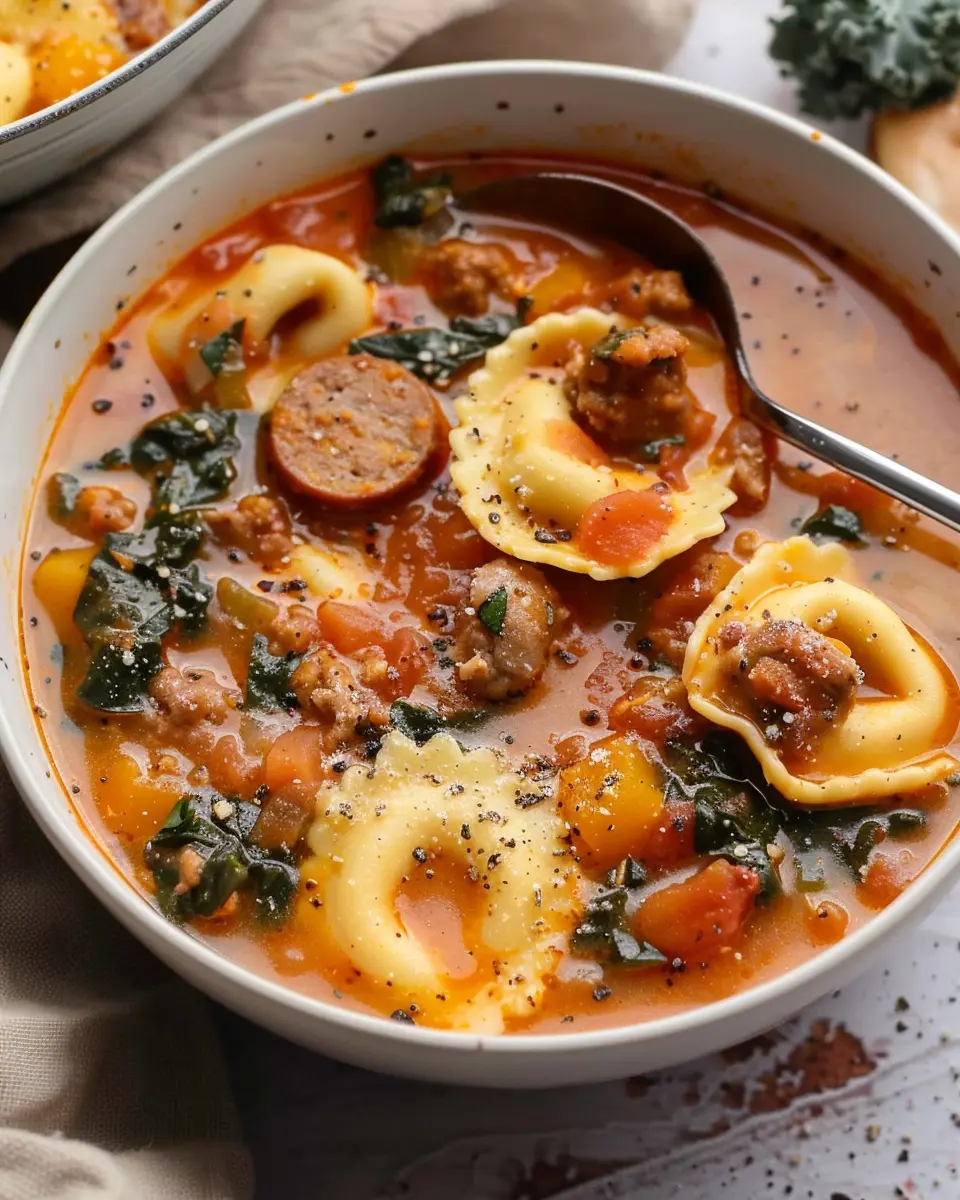 A warm and comforting soup perfect for chilly days, combining butternut squash, sausage, and tortellini for a hearty meal.