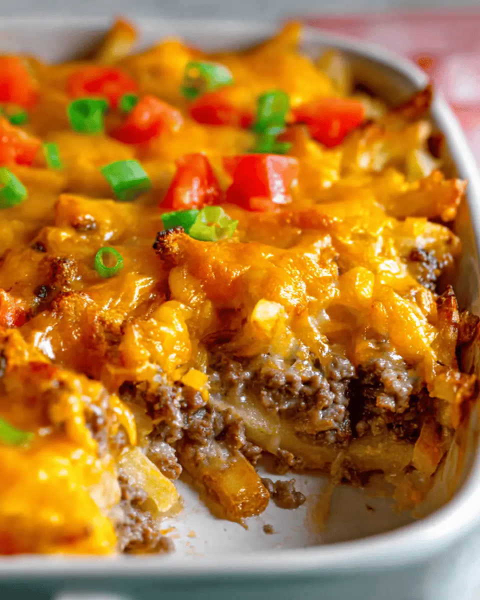 Crowd-Pleaser: Whether you’re hosting friends for a casual get-together or just chilling at home with family, this Cheeseburger French Fry Casserole is bound to be a hit. It’s a hearty and satisfying dish that brings everyone back to the table with smiles and satisfied bellies.