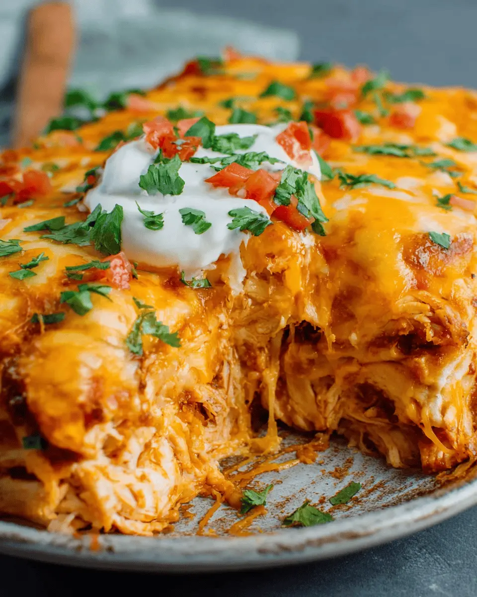 Home » Recipes » Cheesy Chicken Enchilada Casserole: A Cozy Comfort Dish for All