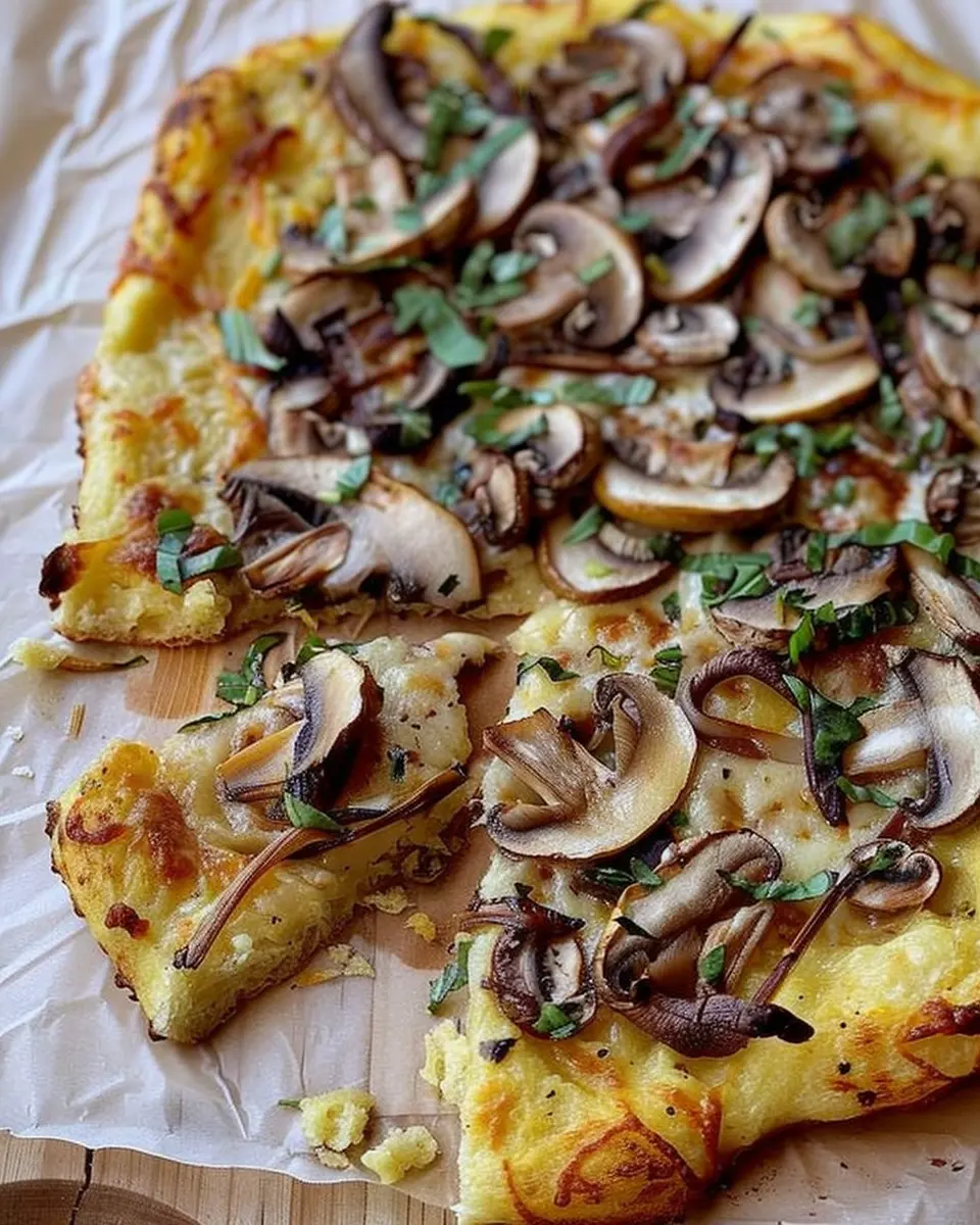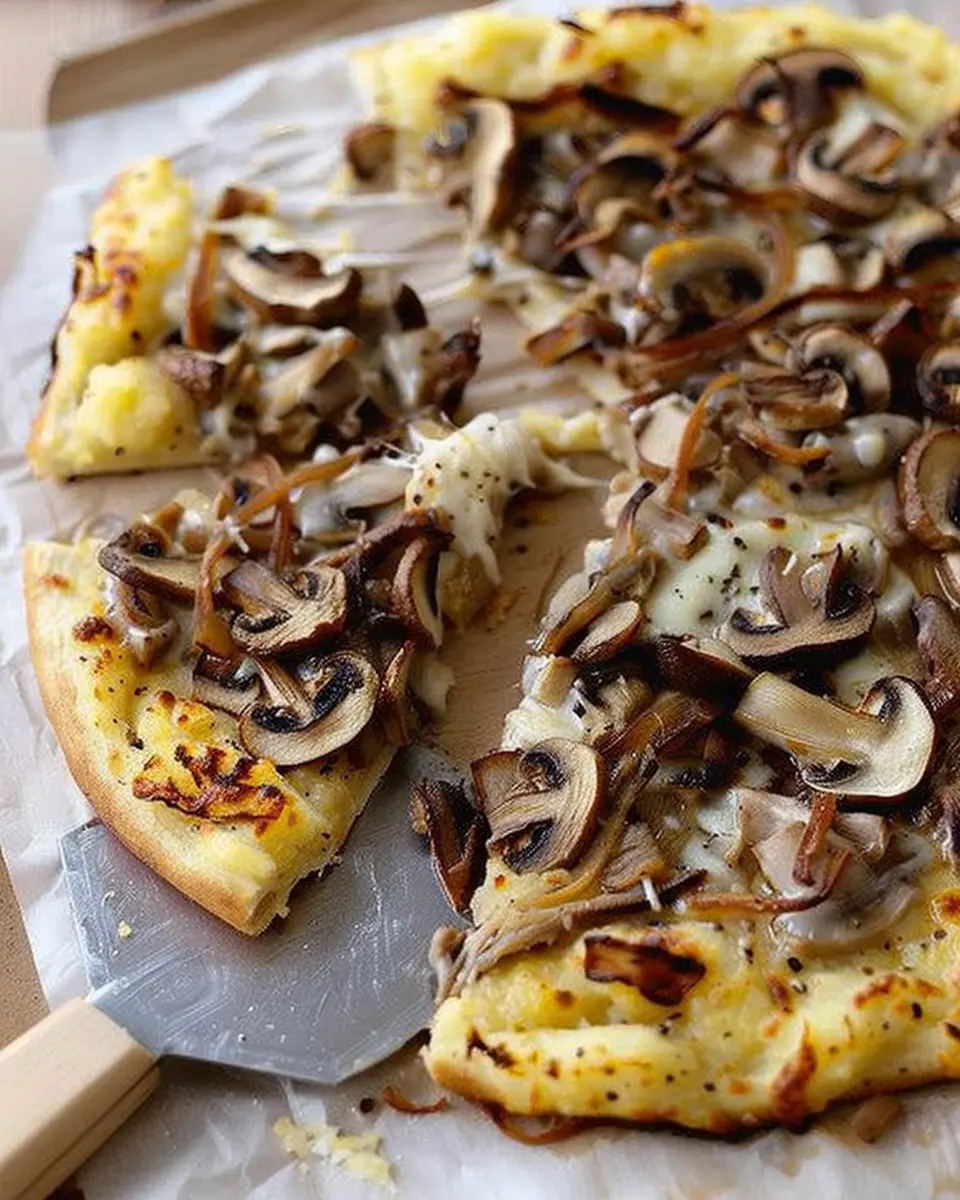 A deliciously unique twist on traditional pizza, combining the creaminess of polenta with savory mushrooms.