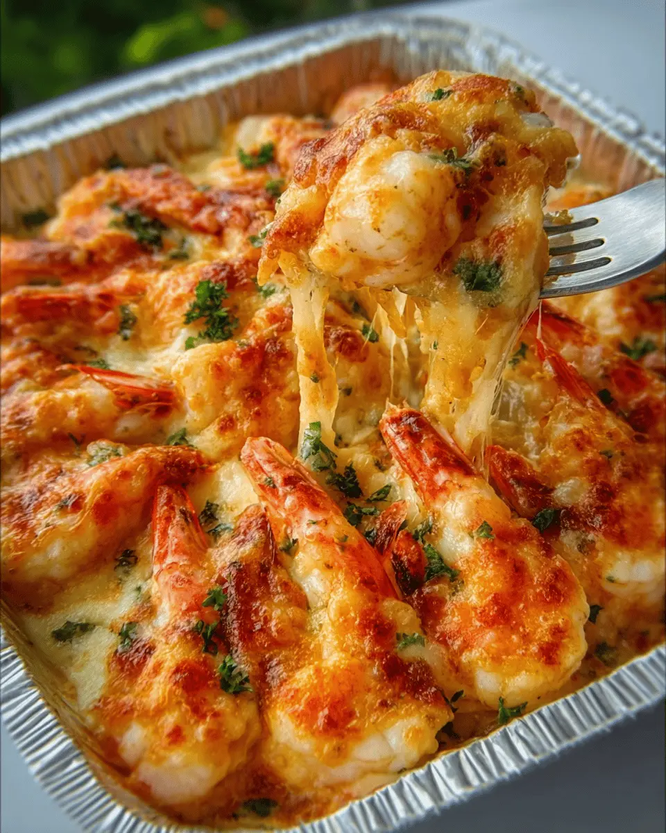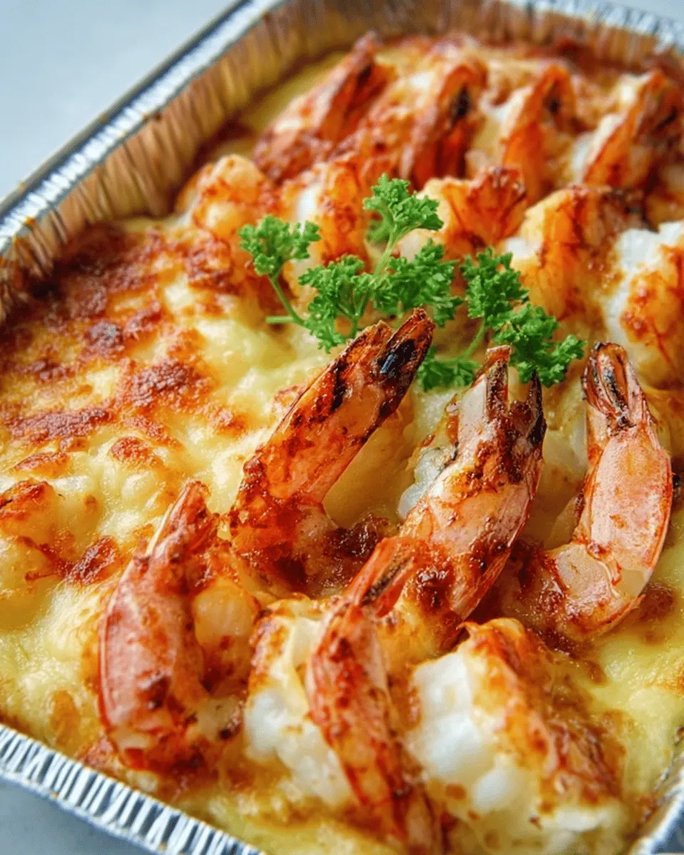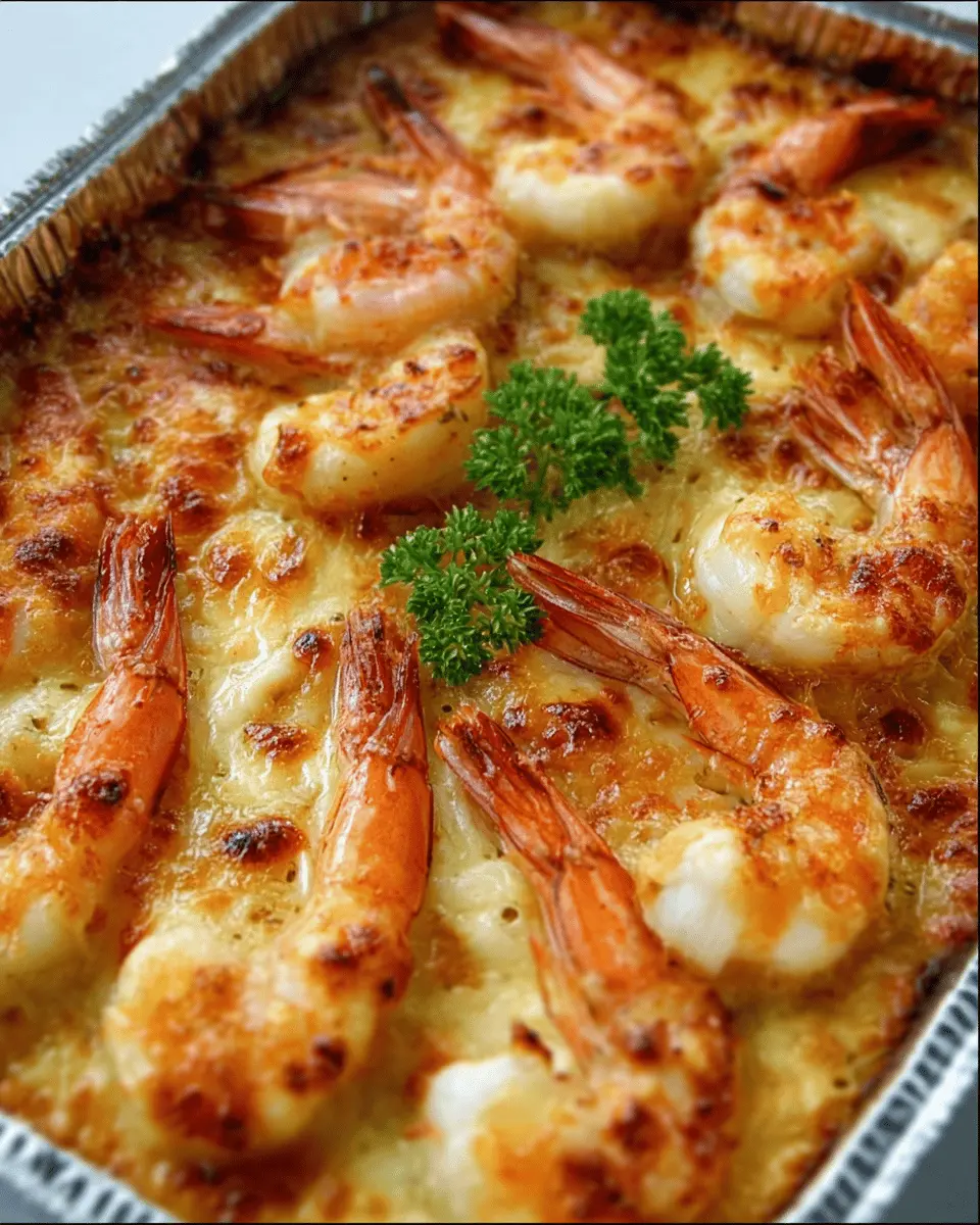A rich and flavorful cheesy shrimp bake that delivers comfort and indulgence in every bite.