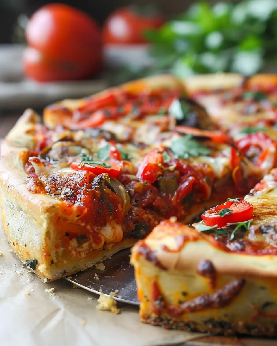 In total, you’re looking at approximately 70-90 minutes from start to finish. That’s just enough time to set the mood with some great tunes, maybe pull up a favorite podcast, and prepare to wow your friends or family with this delightful Chicago Deep-Dish-Style Veggie Pizza.