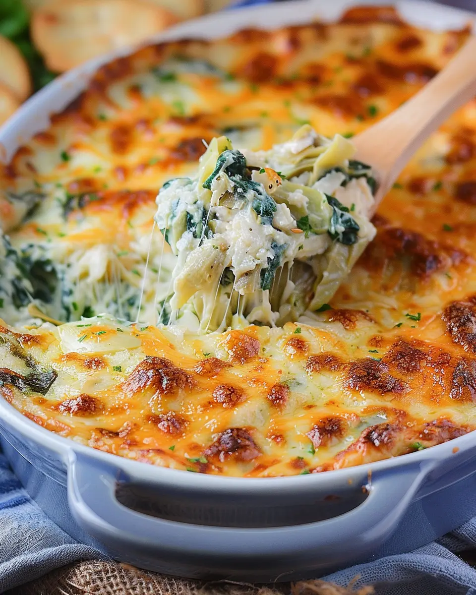 Even if you’ve got a busy week ahead, whipping up this crowd-pleaser is simpler than you think. With just a few key ingredients – fresh spinach, tender artichokes, and flaky crab – you’re well on your way to impressing your guests. Plus, for those looking to cut calories or make it a bit healthier, you can easily substitute regular cream cheese with lighter versions, or consider using Turkey Bacon or Chicken Ham for an extra flair.
