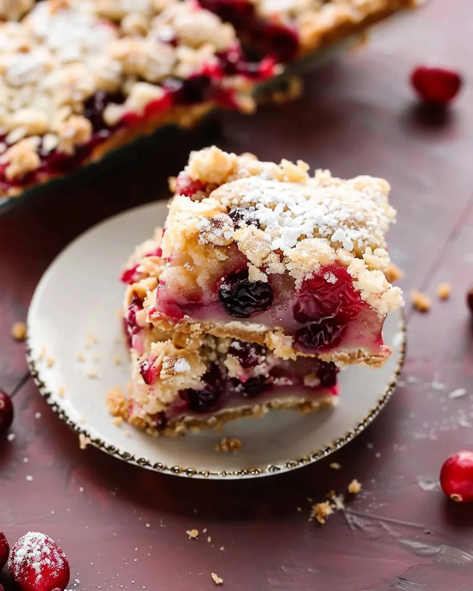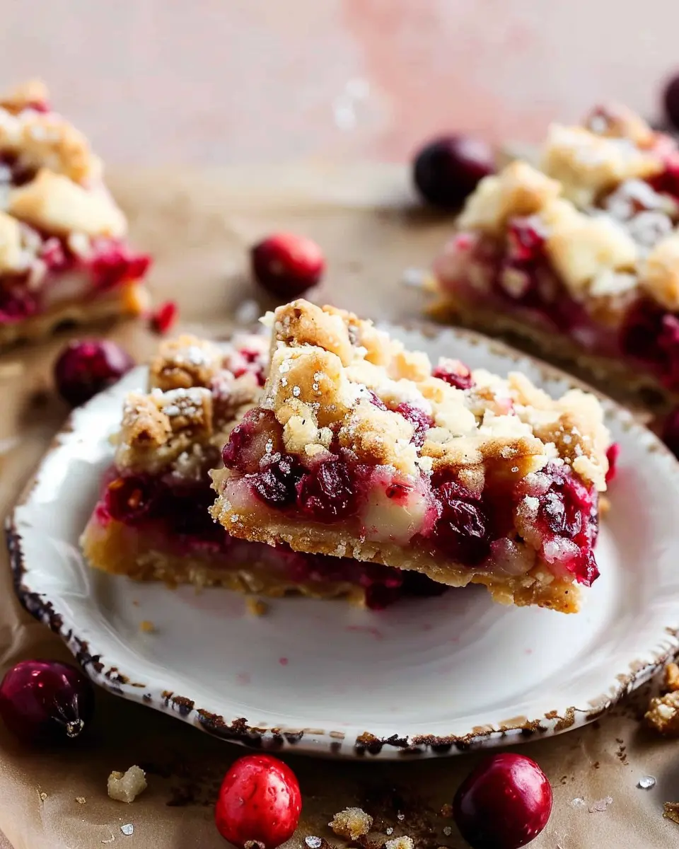 One of the best things about these bars is their versatility. Whether you’re planning a cozy family gathering or need a quick treat to bring to the office, these bars fit the bill. You can easily whip them up in a single pan, and they store well, making them ideal for meal prep. Plus, cranberries are packed with antioxidants and vitamins, so you can feel pretty good about indulging in this treat. Not to mention, the vibrant red of the cranberries adds a beautiful pop of color, making them visually appealing.