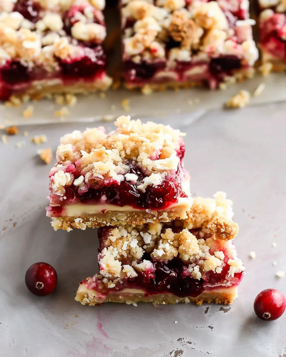 Creating these bars doesn’t require advanced baking skills, either. With a few basic ingredients like oats, butter, flour, and those tart cranberries, you can master this recipe effortlessly. Don’t take my word for it; expert bakers rave about how easily they come together! According to a study by the American Baking Association, simpler recipes tend to encourage more people to bake at home, and these bars are just that—simple yet stunning.