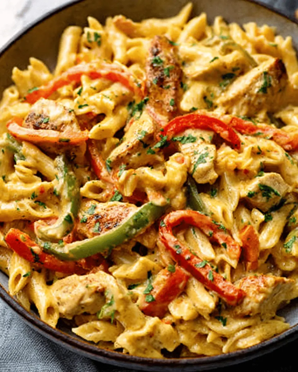 A creamy and flavorful chicken fajita pasta dish that is perfect for family dinners.