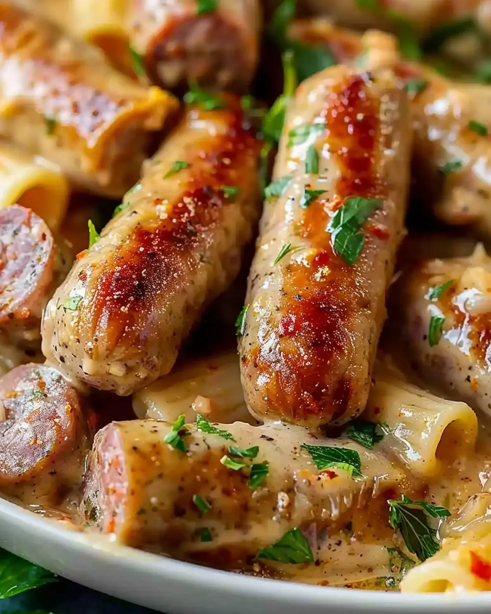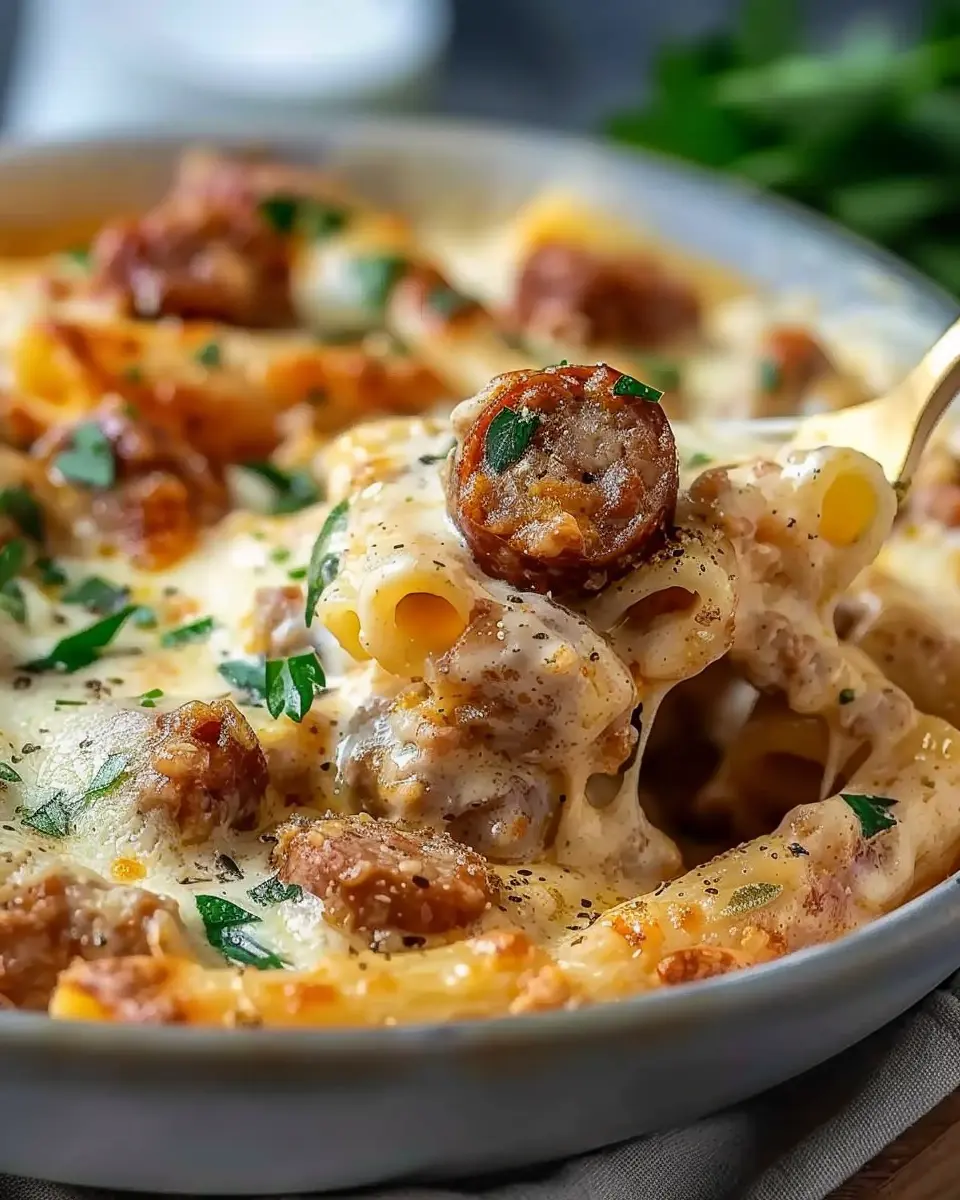 A creamy and flavorful pasta dish that combines succulent Italian sausage with a rich sauce, perfect for a cozy night in.