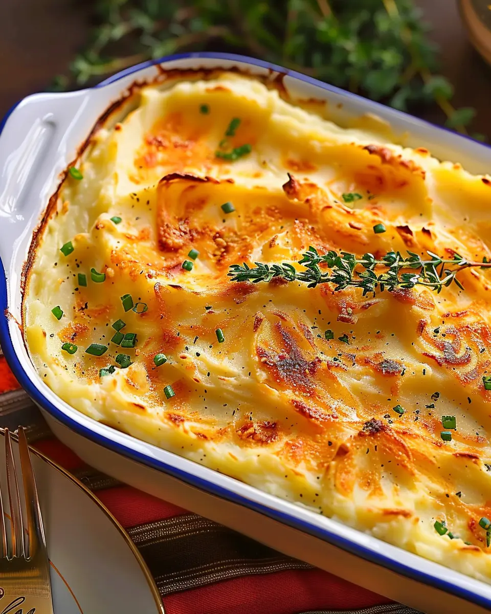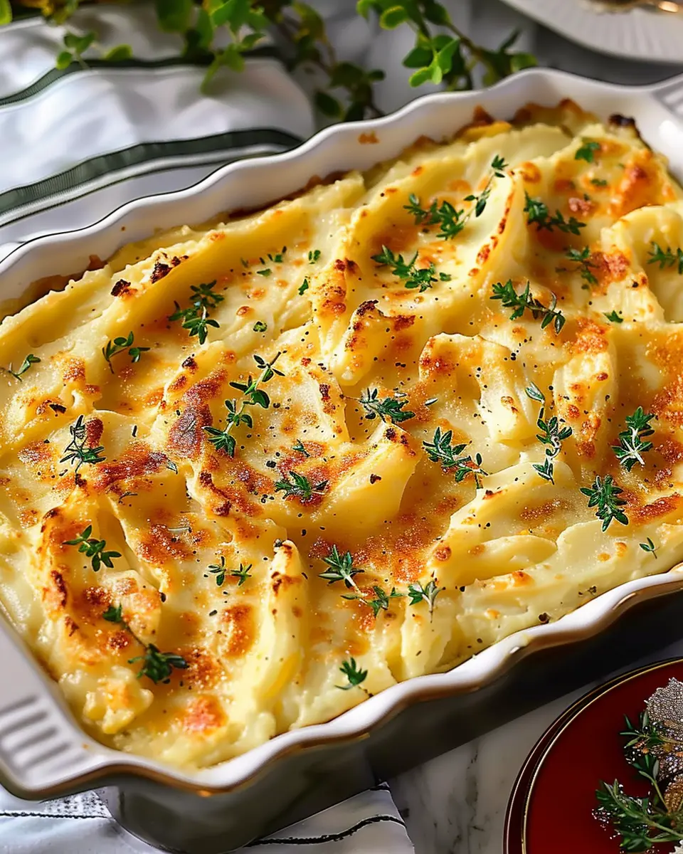 Experience the ultimate comfort food with this creamy whipped potato casserole, perfect for family gatherings.