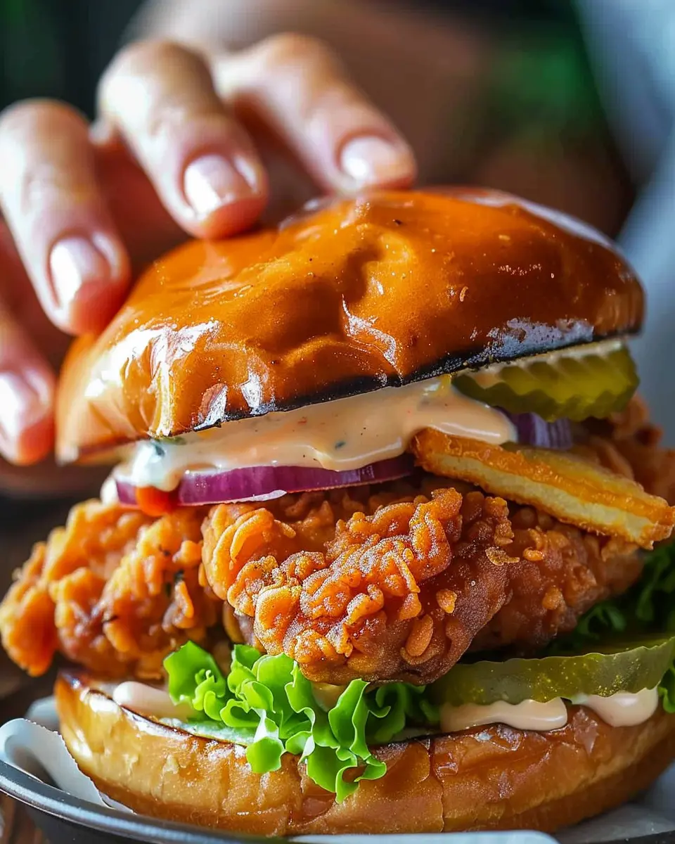 A delicious and indulgent crispy chicken sandwich recipe with layers of flavor.
