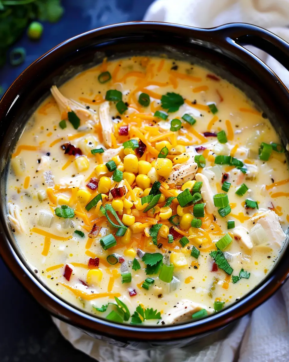 Home » Recipes » Crockpot Chicken Corn Chowder: Easy Comfort Food with Turkey Bacon