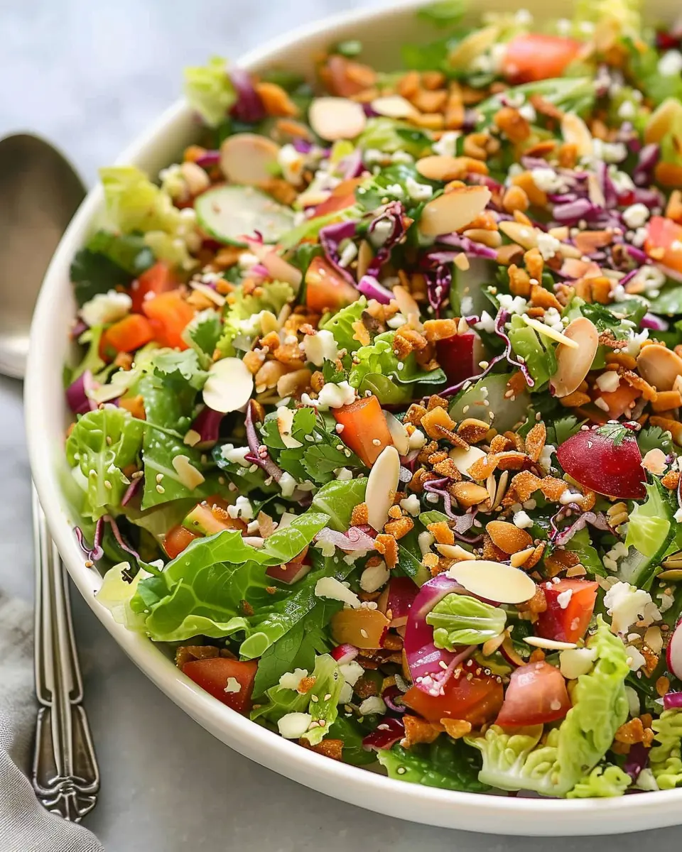 Looking to change up the nutty notes of your salad? Consider swapping out almonds for pistachios! These little green gems add a unique flavor and a creamy texture that complements the crunchiness of the salad. Plus, they’re rich in protein and healthy fats, making your salad even more satisfying. Simply sprinkle a handful of shelled pistachios on top for an inviting color contrast and delightful crunch. If you want to dive deeper into the nutritional benefits of nuts, sources like Nuts for Health can provide valuable insights.