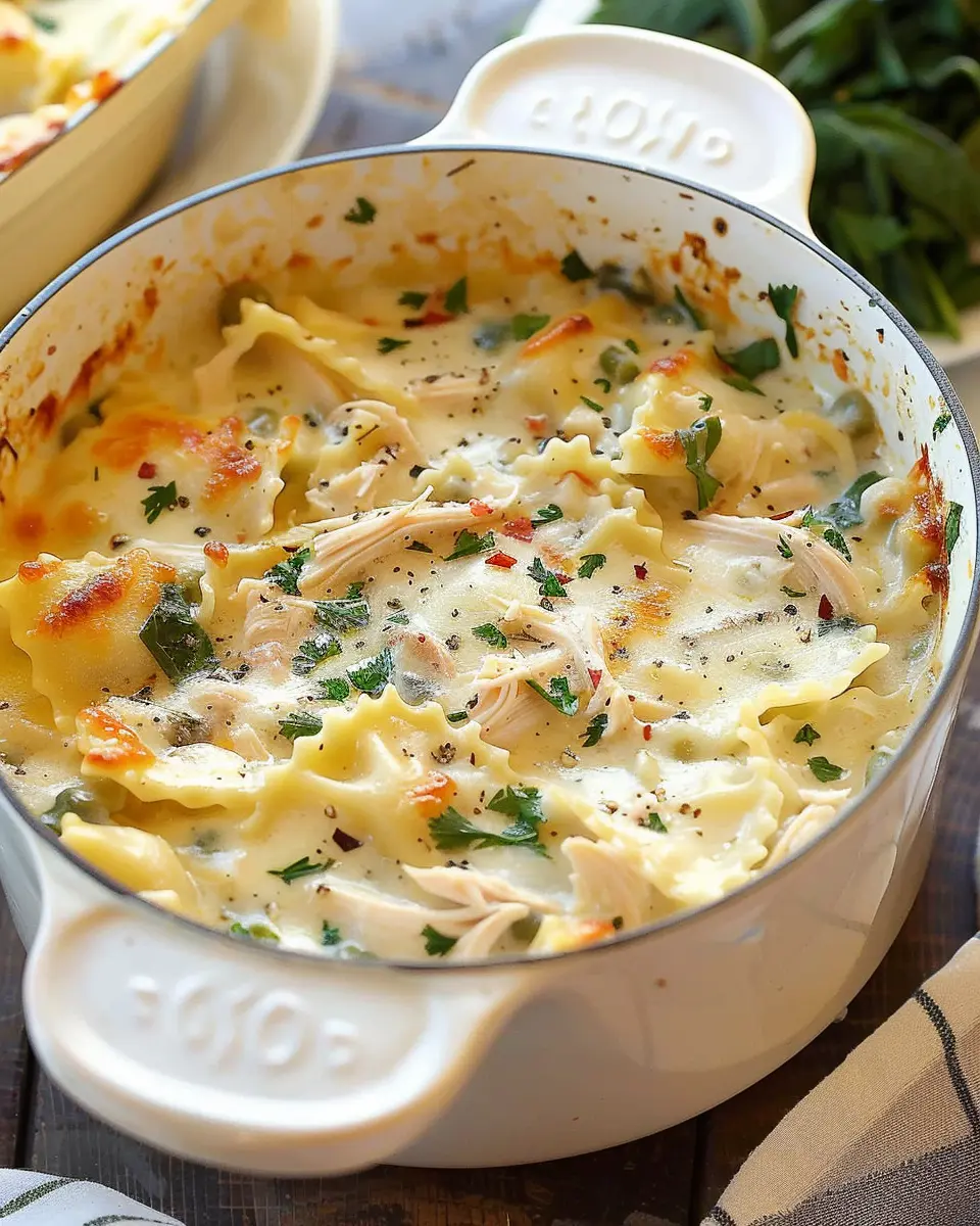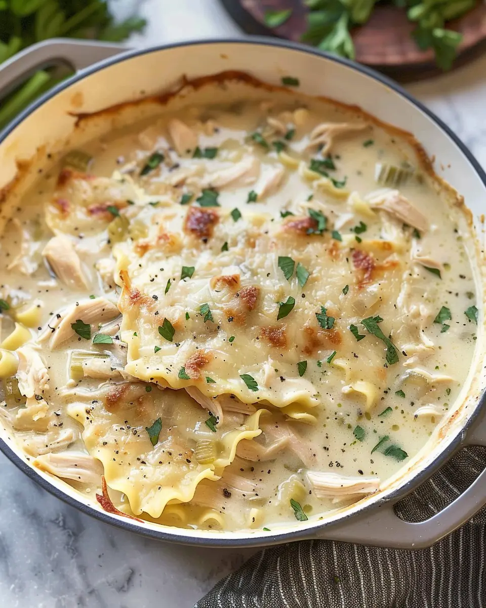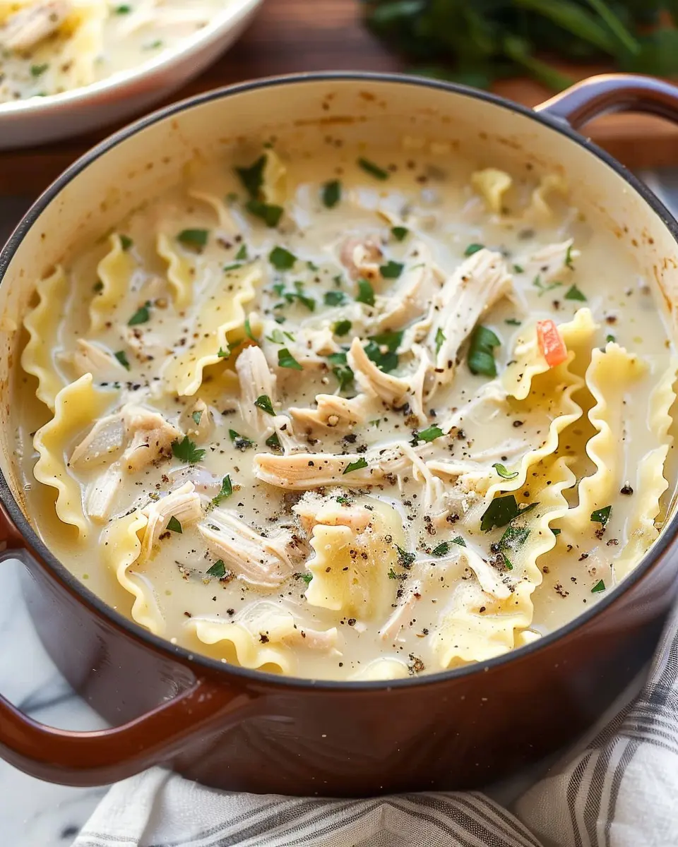 A warm and comforting soup that combines the flavors of lasagna with tender chicken.