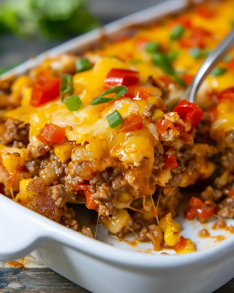 If you’re craving something with a little more kick, the Tex-Mex variation of the easy cowboy casserole is just the ticket! This version is bursting with flavor thanks to the addition of spices and traditional Mexican ingredients.