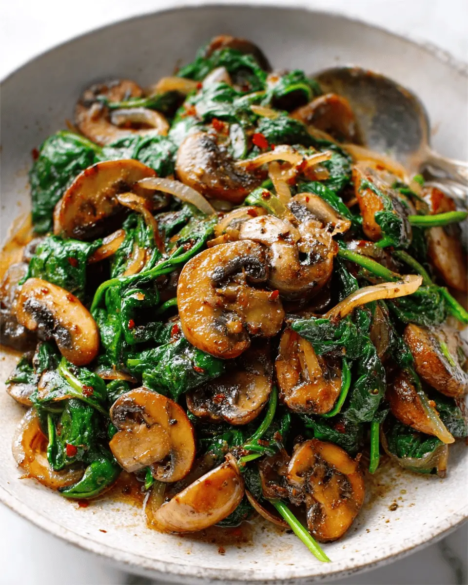 Once the onions are beautifully caramelized, it’s time to introduce the sliced mushrooms. These little powerhouses of flavor add an earthy touch to your dish. Sauté the mushrooms along with the onions until they’re golden brown and tender, which usually takes an additional 3-5 minutes. They’ll release moisture, which will help in developing a lovely depth of flavor in your easy sautéed spinach.