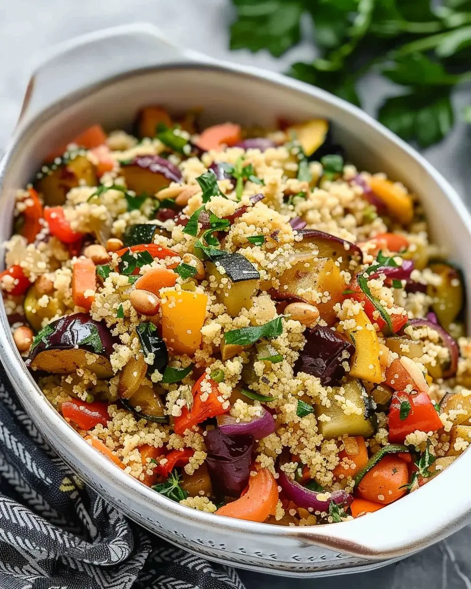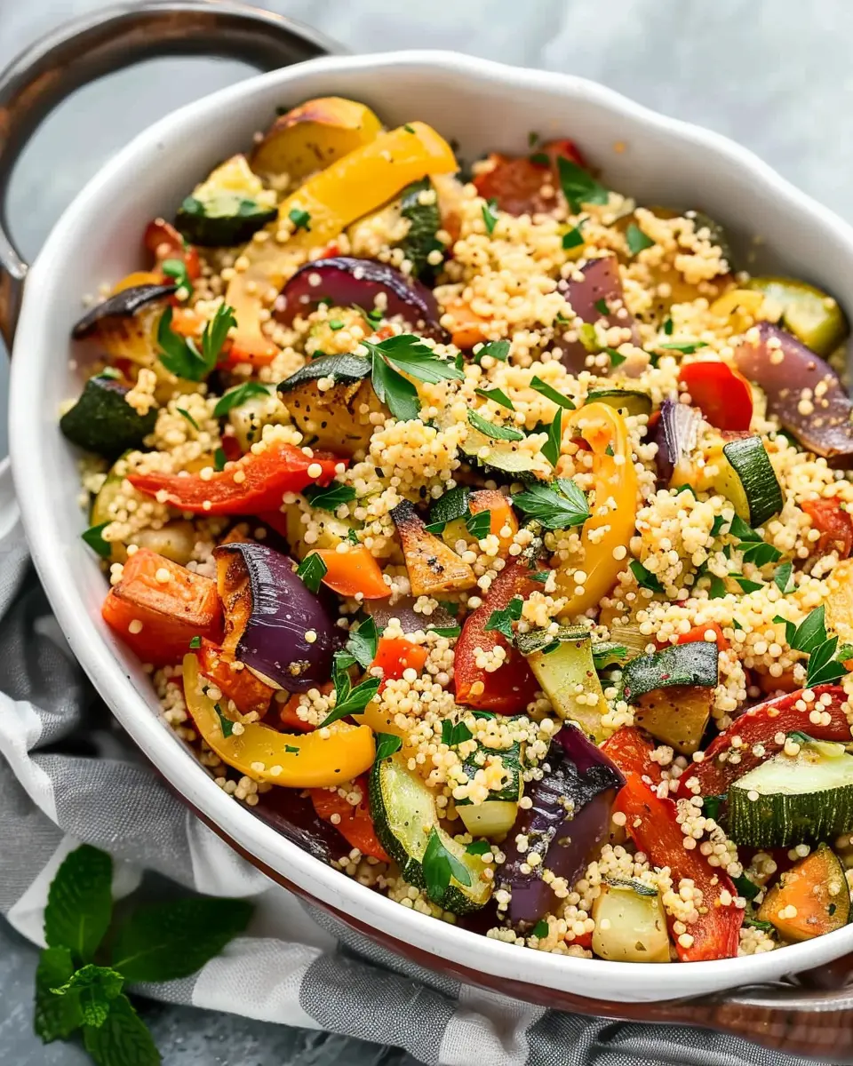 Enjoy the vibrant flavors and comfort of our Flavorful Roasted Vegetable Couscous recipe, perfect for any occasion.