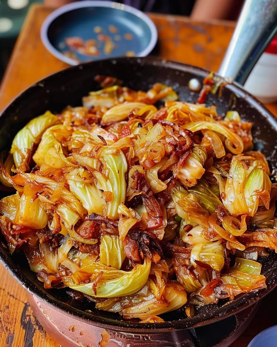 A delicious and easy recipe for fried cabbage with turkey bacon, perfect for a comforting meal.