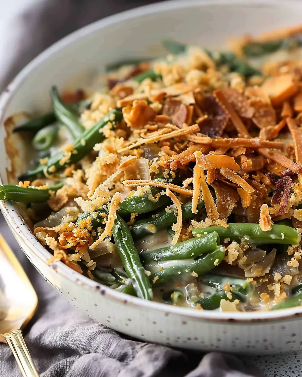 PrintGluten-Free Green Bean Casserole: A Mouthwatering Twist with Turkey Bacon and Chicken Ham
