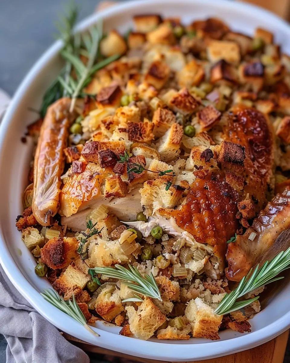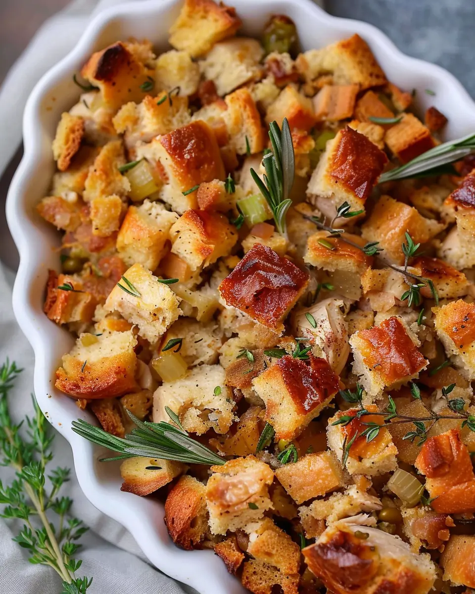 In conclusion, Grandma’s Thanksgiving Turkey Stuffing is more than just a recipe; it’s a tradition that brings warmth and comfort to your holiday table. This stuffing, featuring Turkey Bacon and an array of aromatic herbs, is bound to elevate your Thanksgiving feast. The delightful medley of flavors and textures not only complements your turkey but also fosters a sense of togetherness.
