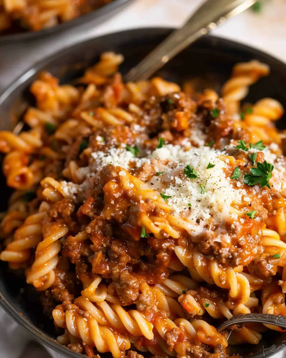 Once you’re ready, the cooking itself takes around 20–25 minutes. This includes browning the ground beef, allowing the tomato sauce to simmer, and boiling your pasta. It’s a great opportunity to multitask—maybe pour yourself a drink or start tidying up the kitchen while everything cooks!