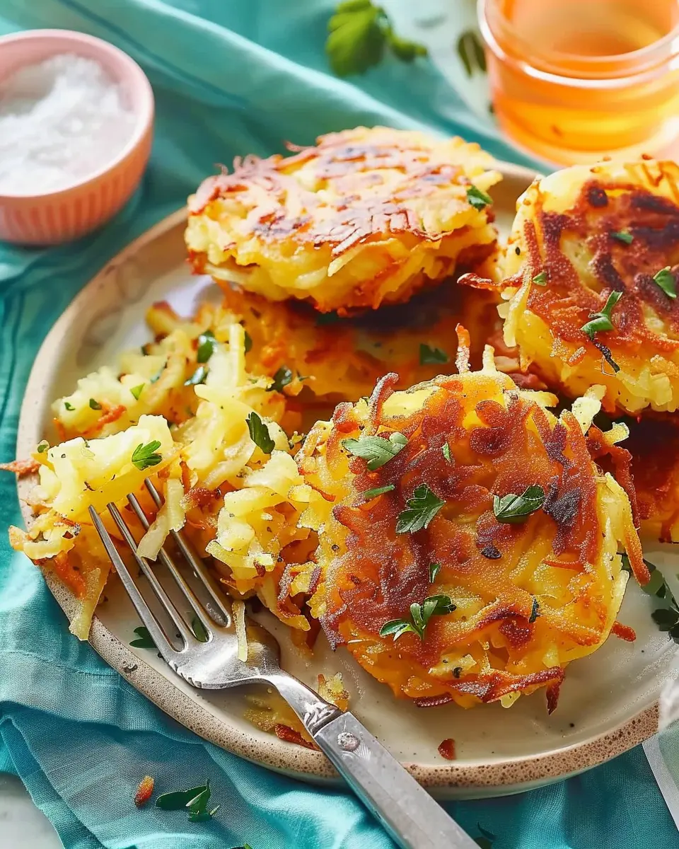 • For extra crispiness, squeeze out excess moisture from the shredded potatoes before mixing.
