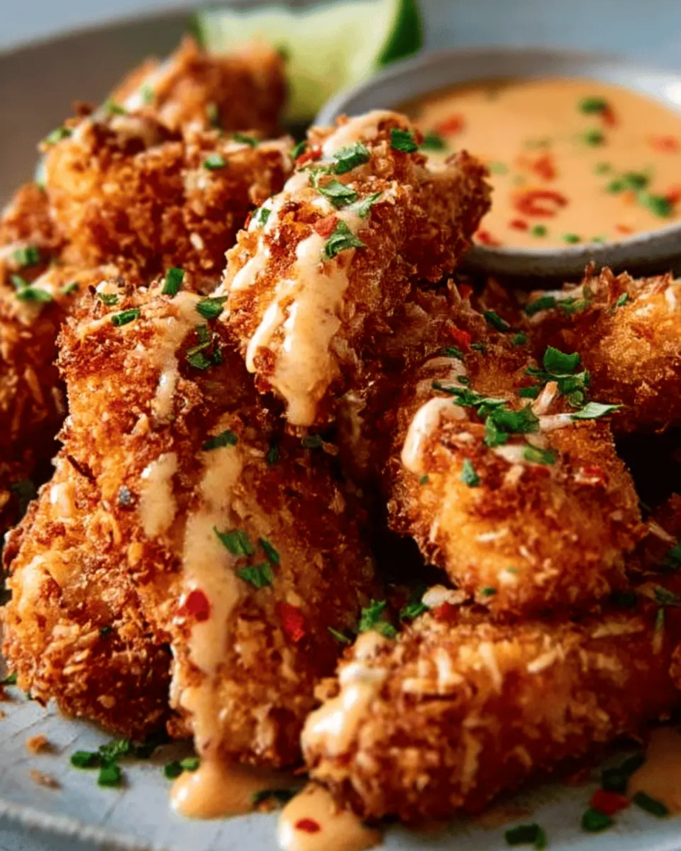 Irresistible Crunch Coconut Chicken with Easy Bang Bang Sauce