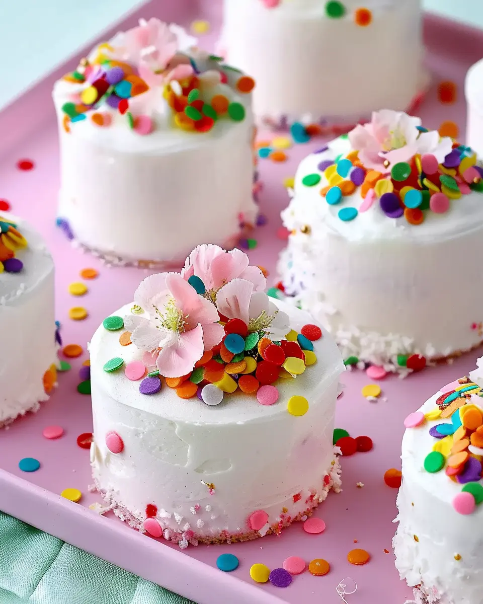 Mini Confetti Cakes are perfect for any celebration, offering a delightful combination of fun and flavor.