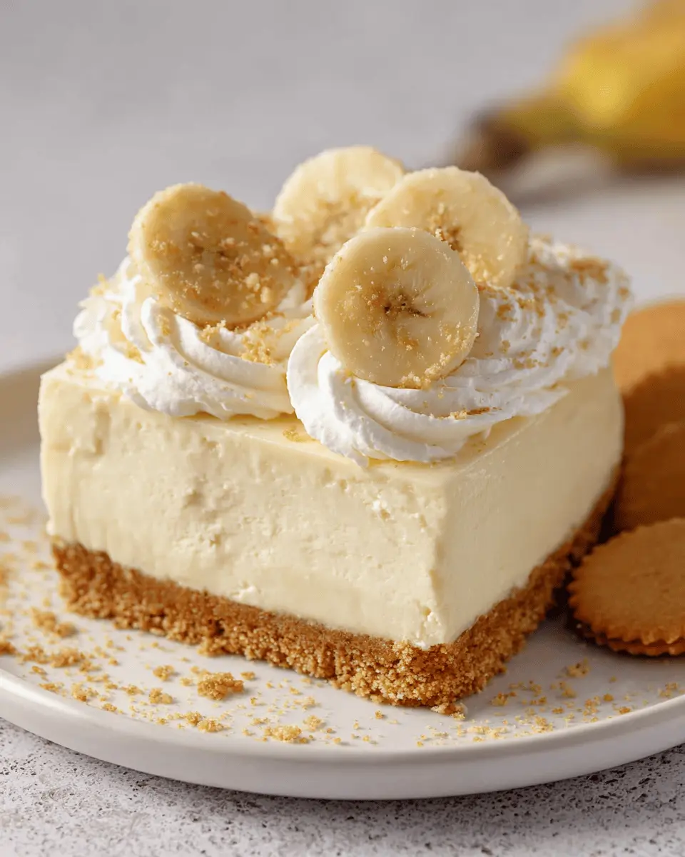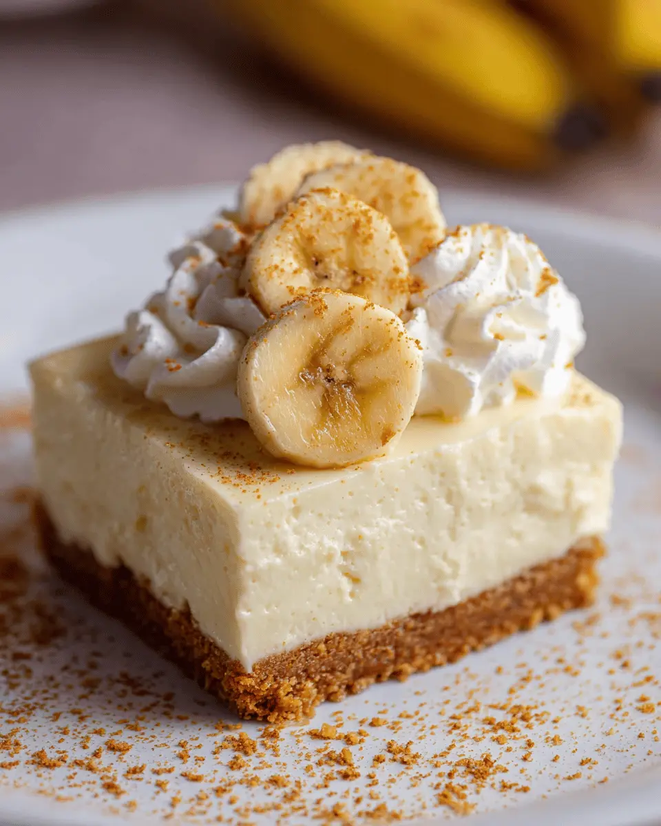 A delightful no-bake cheesecake featuring the flavors of banana pudding.