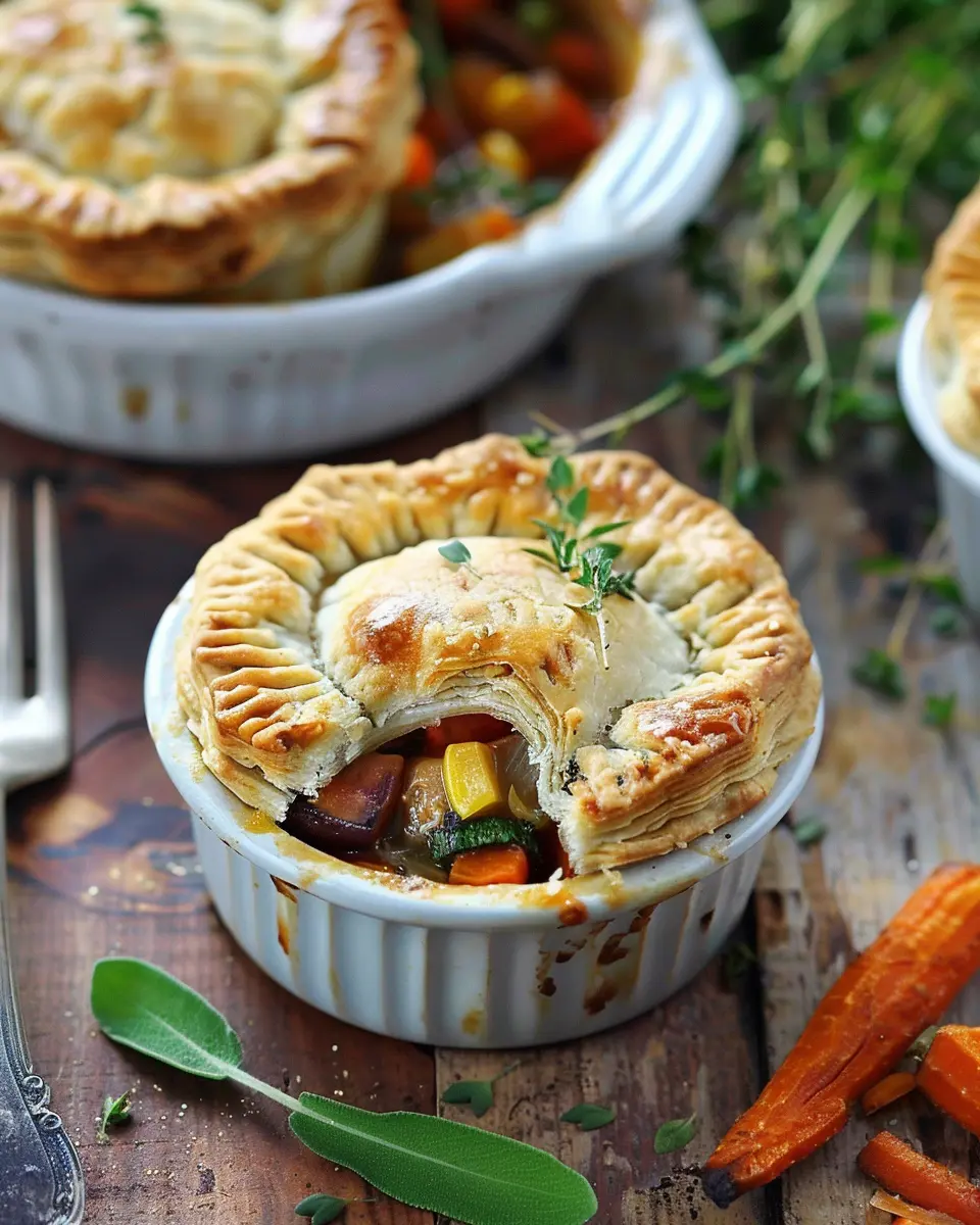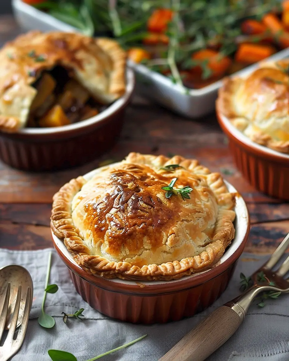 Enjoy the cozy flavors of fall with these delicious roasted autumn vegetable pot pies, perfect for a comforting meal.