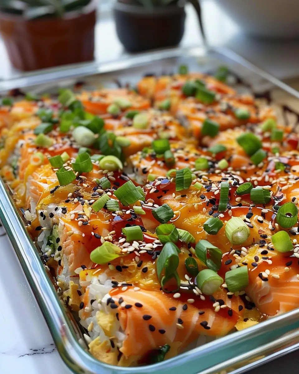 And there you have it! A beautifully layered salmon sushi bake bursting with flavor. Serve it warm, and watch as your guests marvel at your culinary creation. Don’t forget to share your experience and maybe even swap tips with friends online!