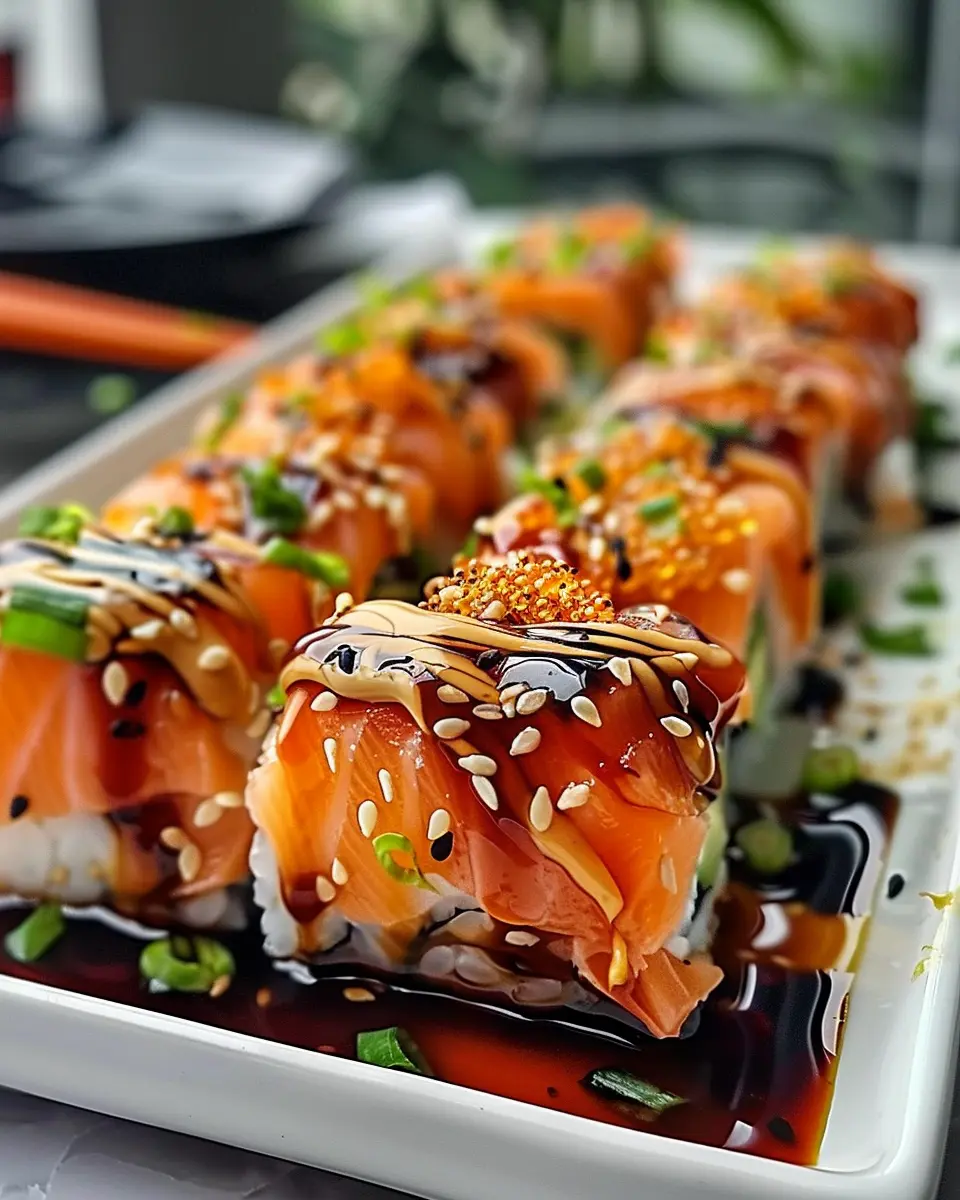 This flavor-packed twist not only adds excitement to your sushi but also makes use of high-quality fish—check out resources like SeafoodWatch.org for sustainability tips when sourcing your salmon.