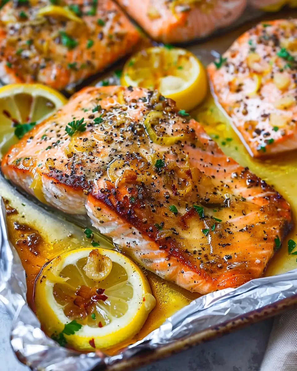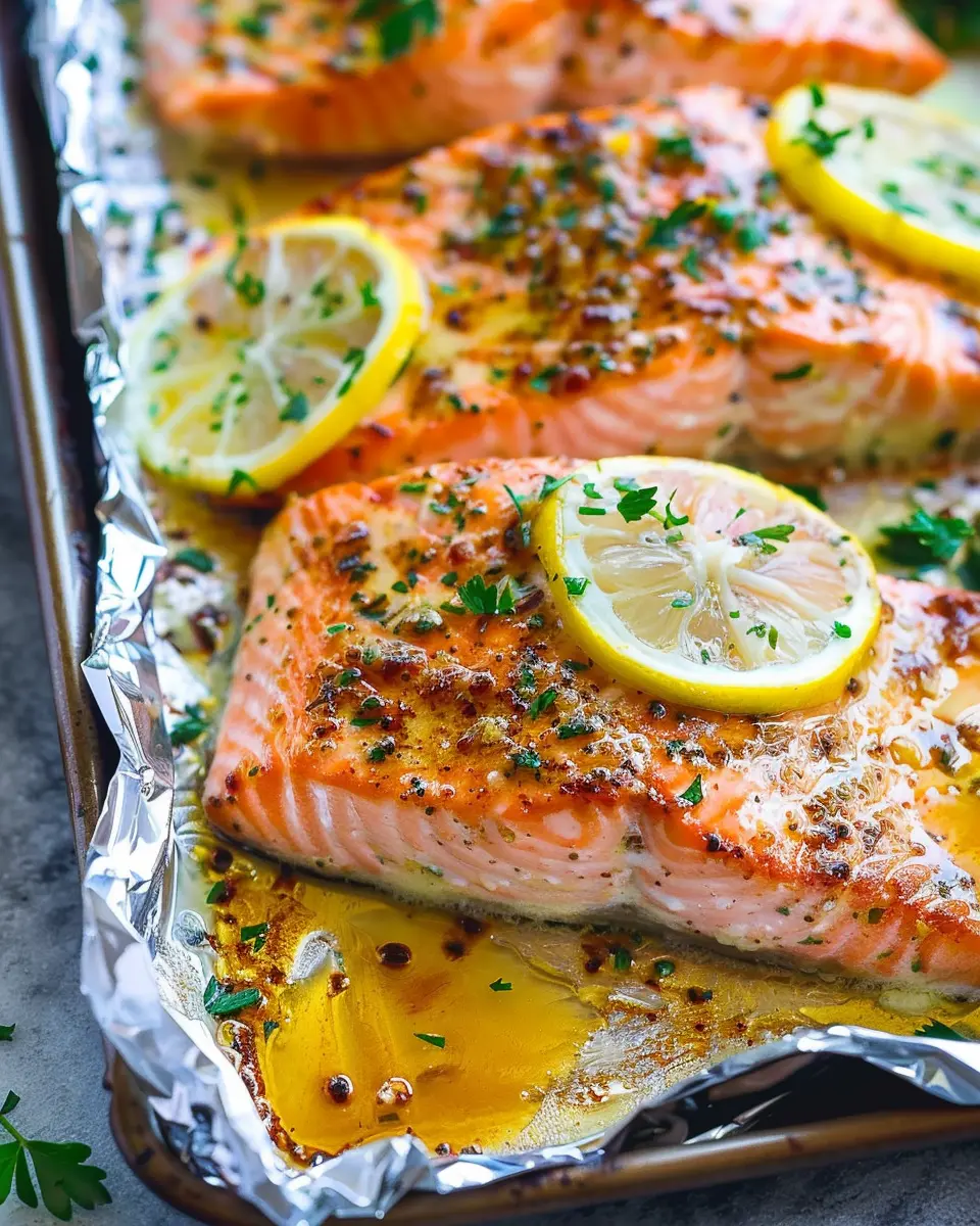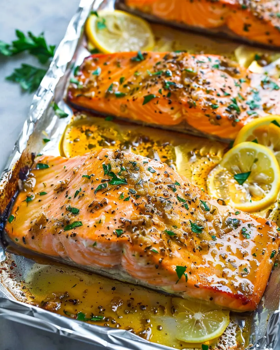 For a tidier cooking experience and to keep the flavors locked in, use the foil pack method. Fold a large piece of aluminum foil into a makeshift bowl. Pour half of the lemon garlic butter mixture over the salmon, then add any optional veggies on the side. Drizzle the remaining mixture over everything.