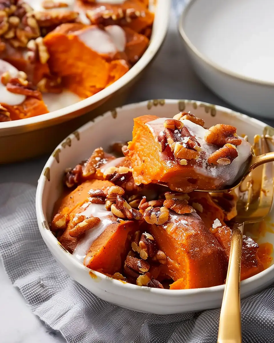 A delicious slow-cooked sweet potato casserole that is perfect for family gatherings.