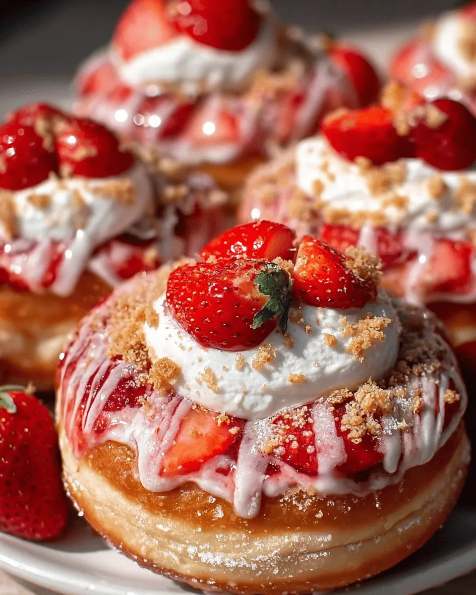 Indulge in the delightful combination of strawberry cheesecake and donuts with this irresistible recipe.