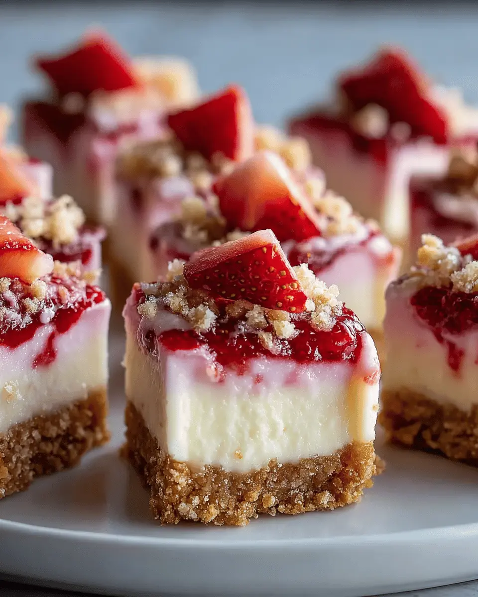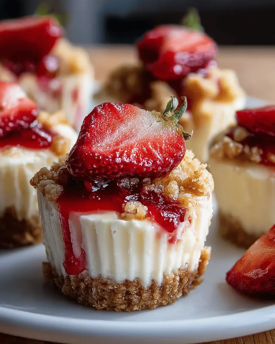 While strawberries are the star of the show, why not get creative with different fruit toppings? Blueberries, raspberries, or even mango can elevate your strawberry crunch cheesecake bites to new heights. Try mixing and matching fruits for a vibrant presentation—think alternating layers or topping each bite with a different flavor. For an extra touch, consider a drizzle of honey or a sprinkle of toasted coconut for added flavor and texture.
