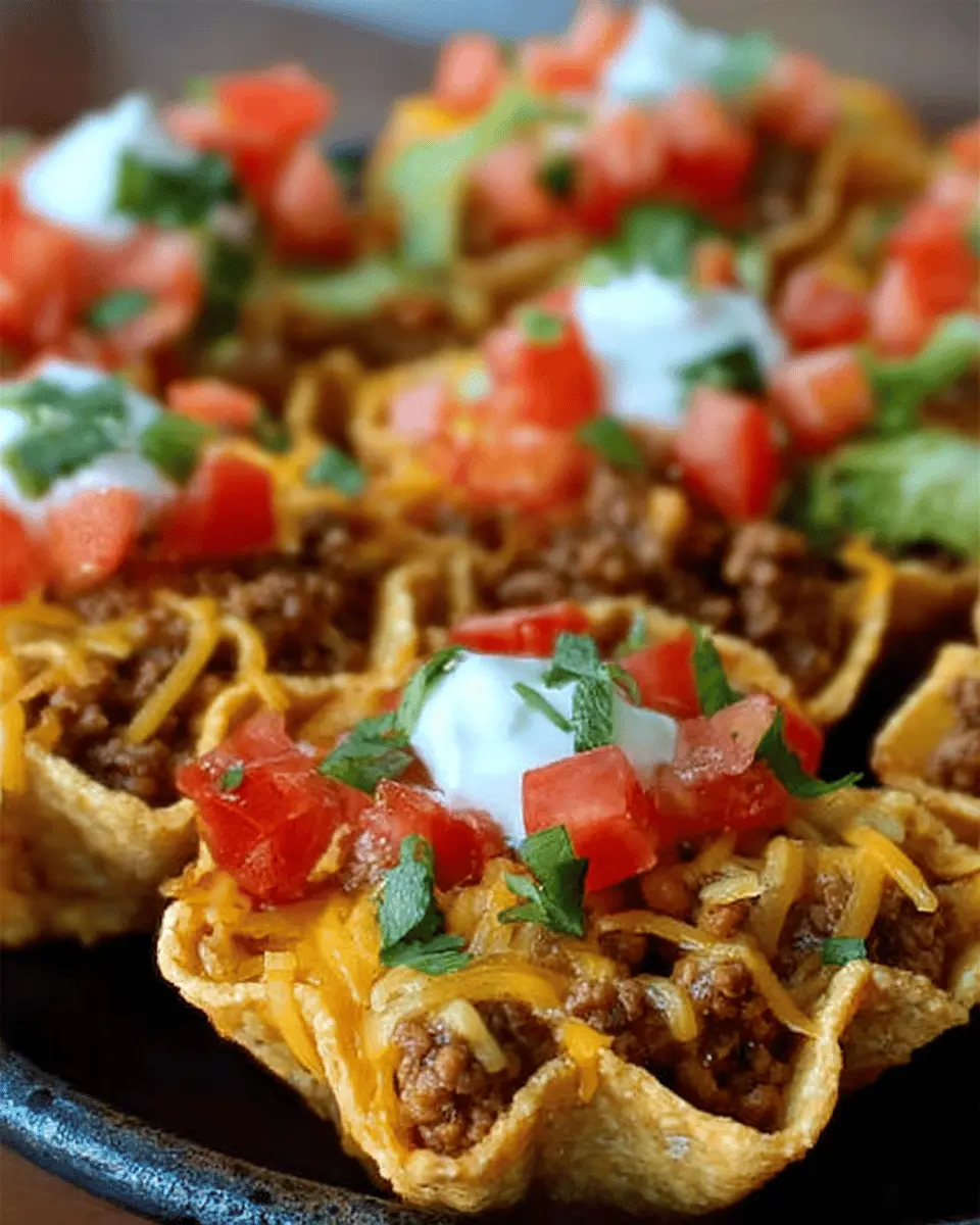 Place the rolled-out crescent dough triangles into the greased mini muffin cups. Make sure to press them down slightly, allowing the dough to mold into the shape of the cup. Fill each cup generously with the taco and ranch mixture—don’t skimp; you want every bite to burst with flavor!