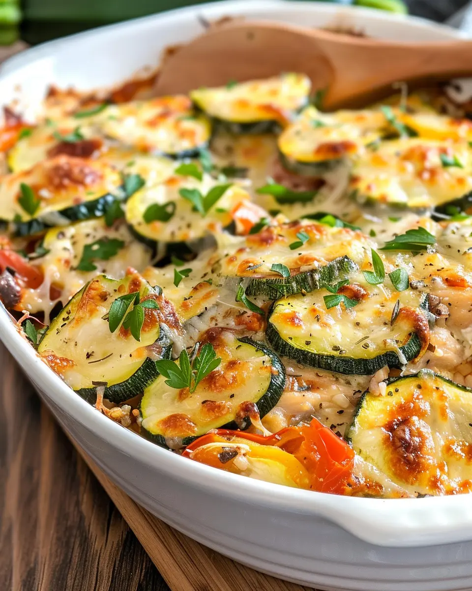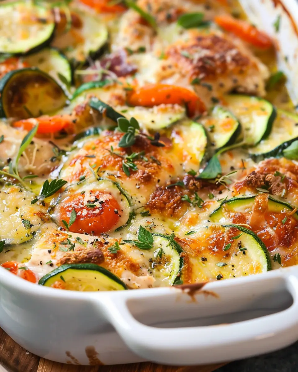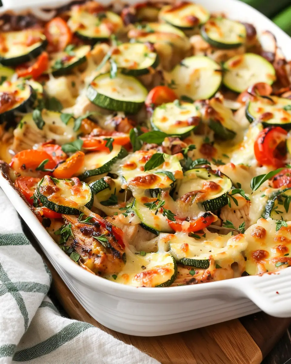 A deliciously healthy casserole that combines chicken, zucchini, and Italian flavors.