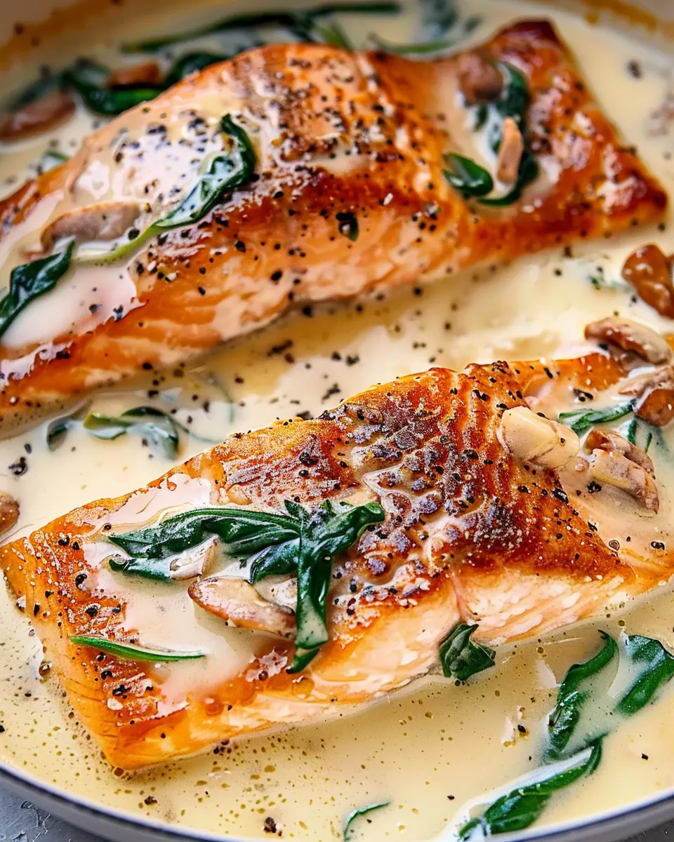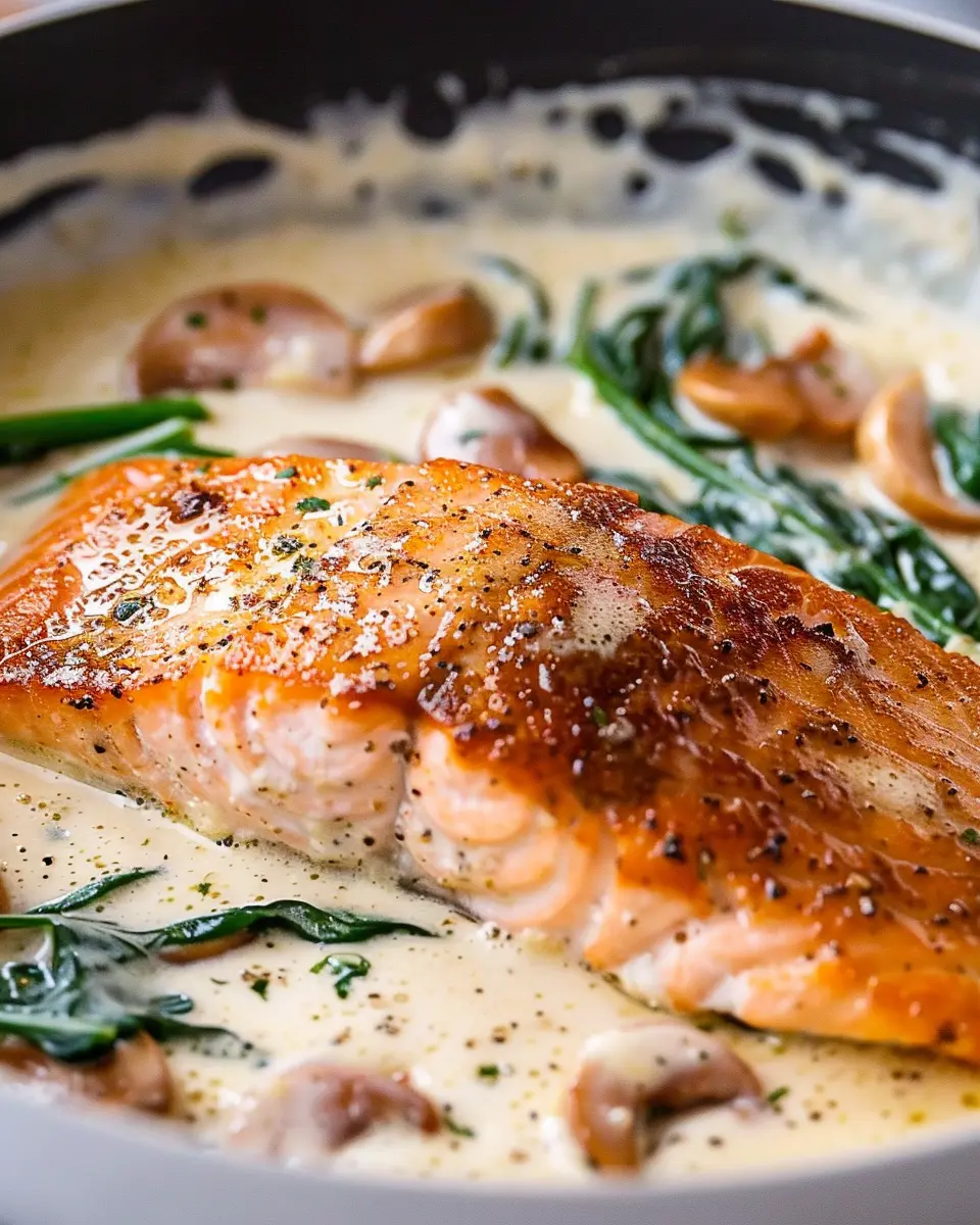 In conclusion, Tuscan Salmon with Parmesan Cream Sauce is more than just a meal; it’s an experience that brings a taste of Italy right to your dinner table. The creamy sauce, enriched with Parmesan, complements the tender salmon beautifully, making it a perfect choice for both a weeknight dinner and a special occasion.