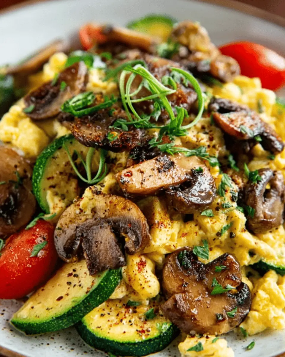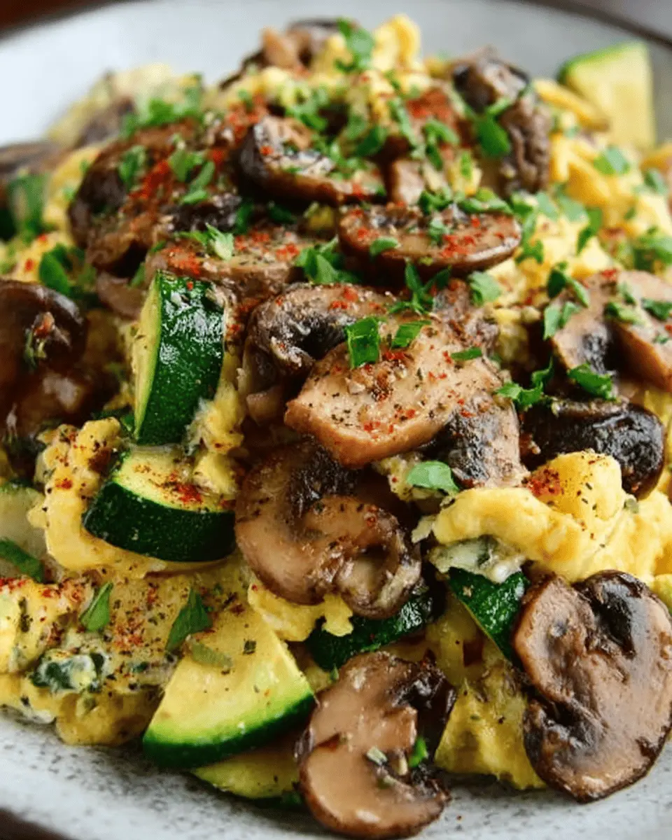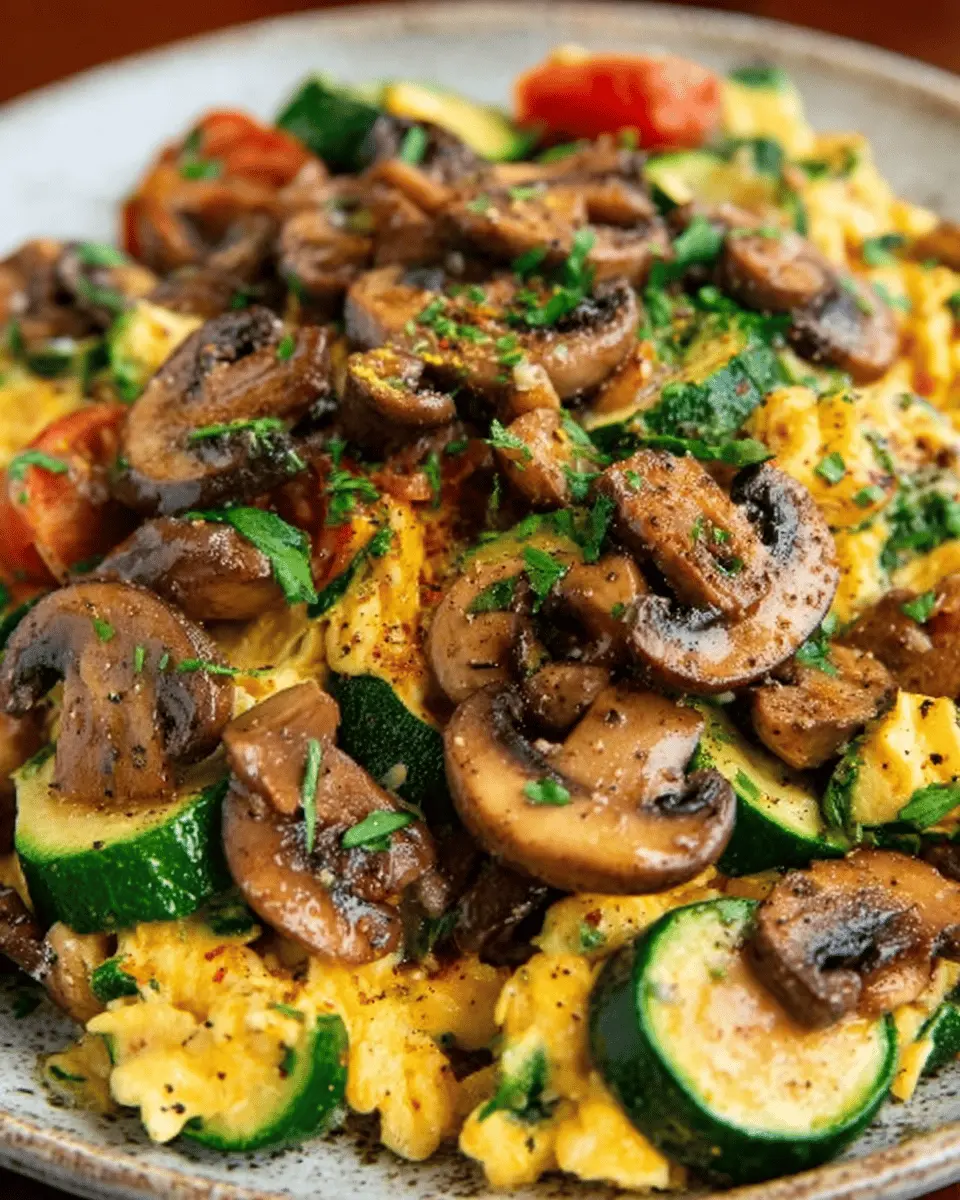 PrintVeggie-Packed Zucchini and Mushroom Scramble for a Healthy Start