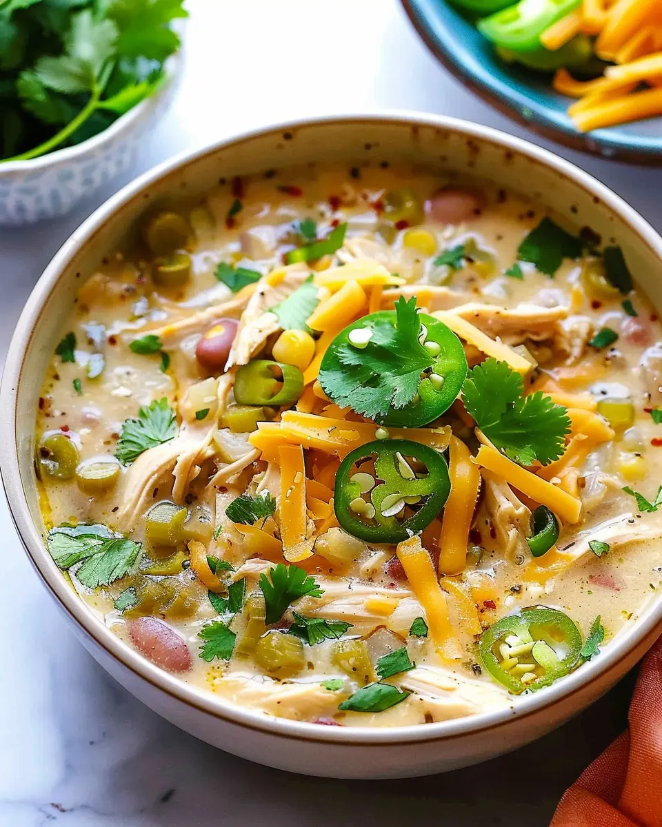 In conclusion, this white chicken chili recipe is a delightful twist on a classic dish that perfectly balances flavor, nutrition, and ease of preparation. With lean proteins from chicken and fiber-rich beans, it’s an excellent choice for a healthy meal that fits your busy lifestyle. Plus, don’t forget about the versatility! You can easily customize this chili to suit your tastes—try swapping in turkey bacon or adding more veggies for an extra nutritional punch.